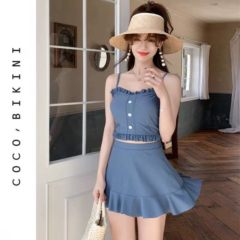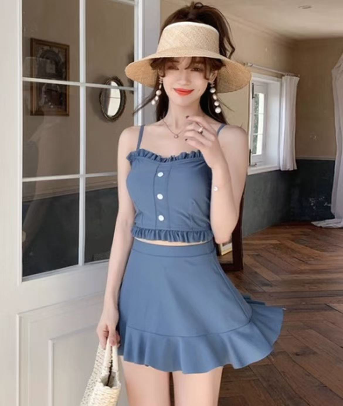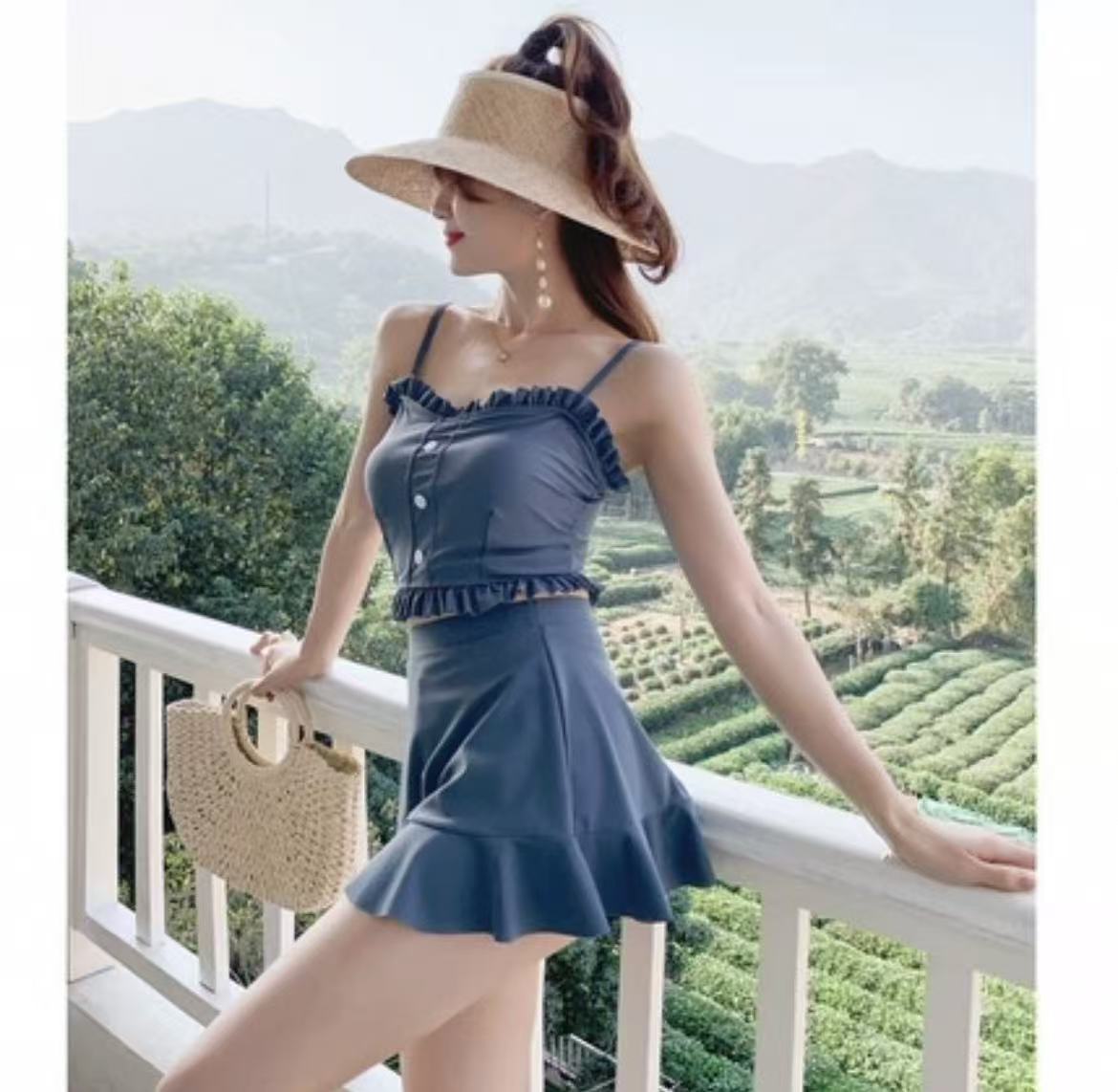 骨格ウェーブ ブルーグレー スチールサポート スカート付き 水着