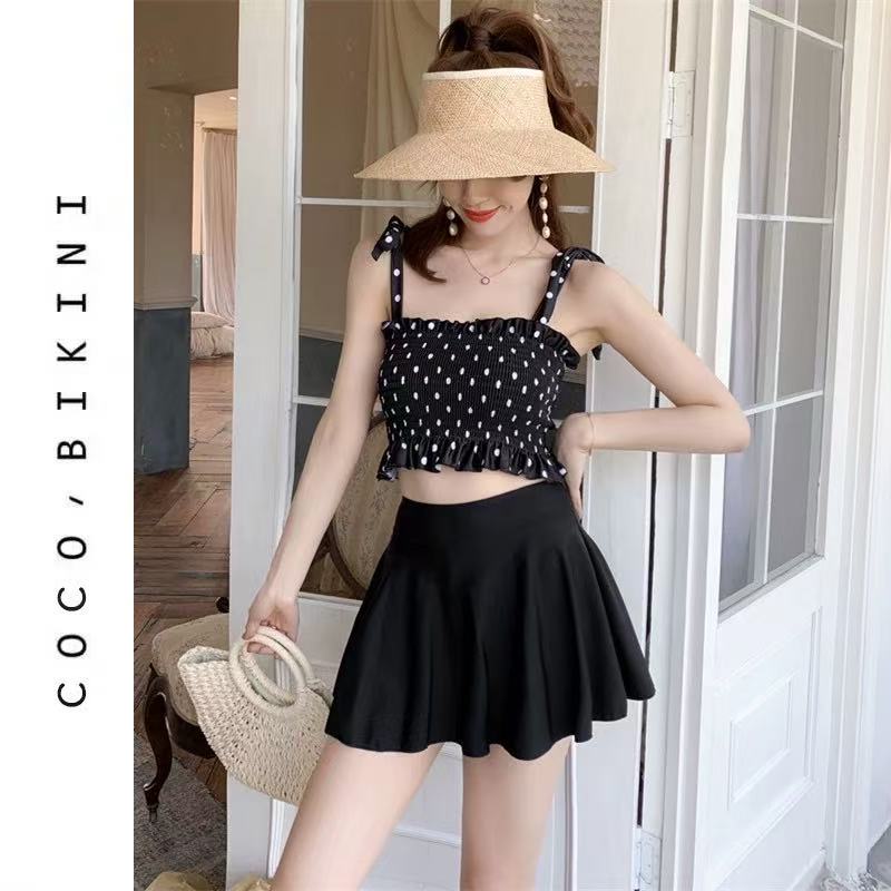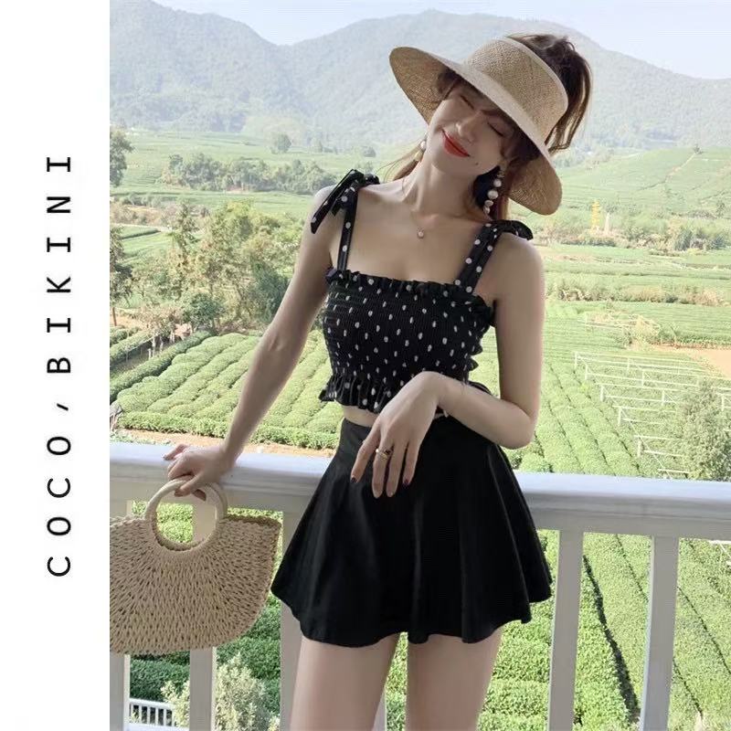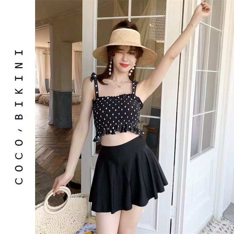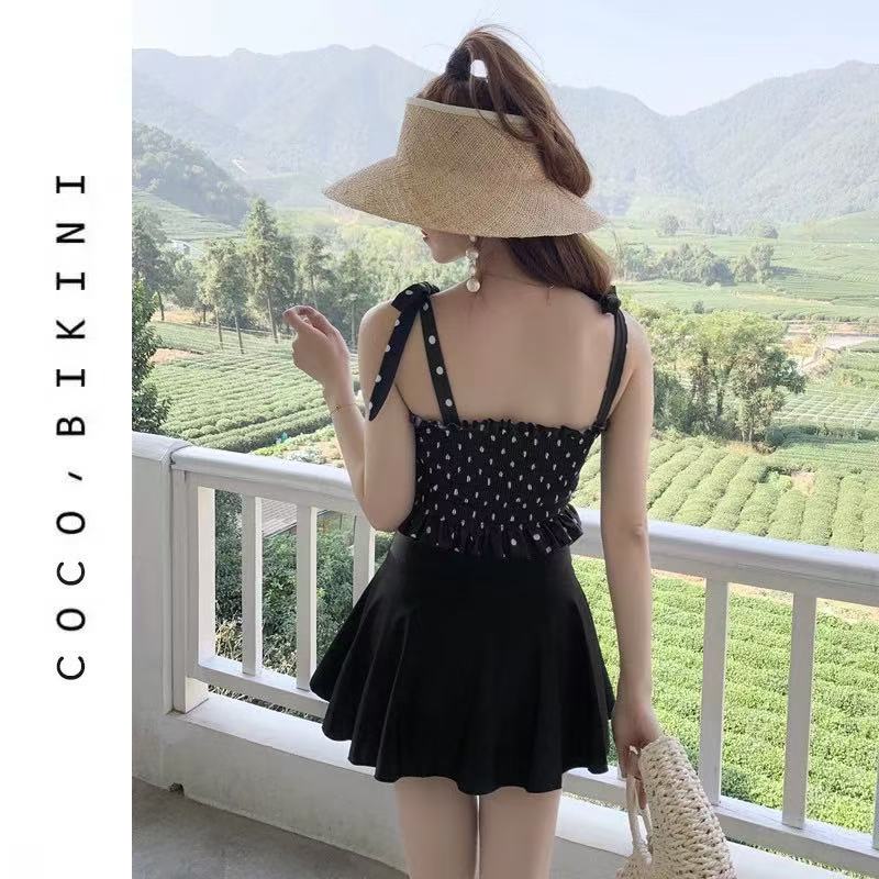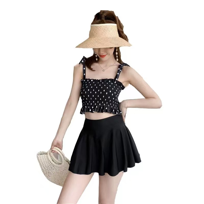 骨格ウェーブ ドット柄 スカート付き ギャザー水着