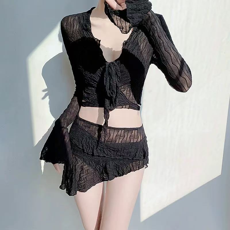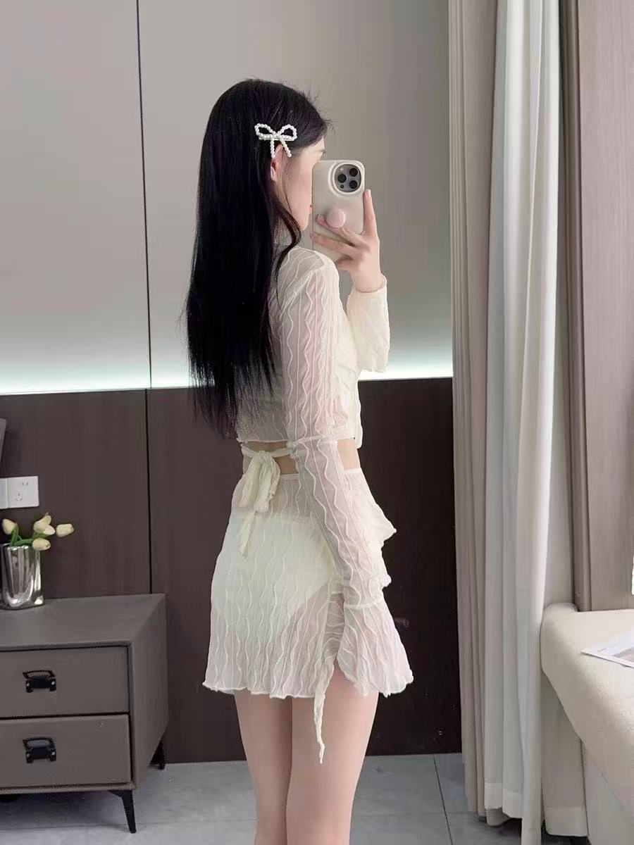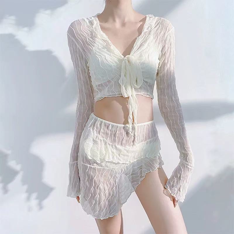 骨格ウェーブ 長袖 スプリットデザイン ビキニ水着