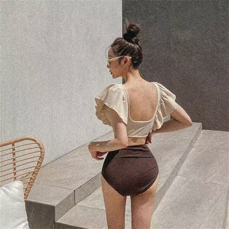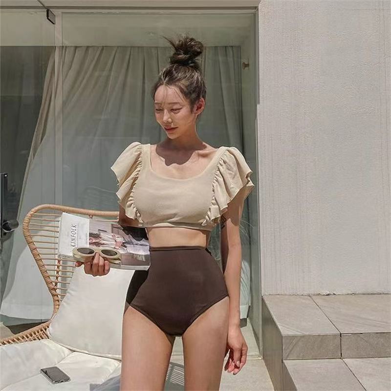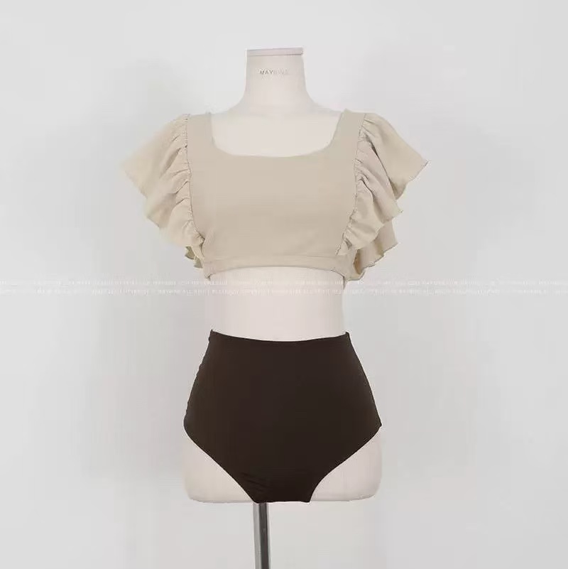 骨格ウェーブさんにぴったりの、上品で可愛らしいスタイルアップ水着です。ハイウエストのボトムがウエスト位置を高く見せ、脚長効果とくびれを引き立てます。華奢な上半身を補うフリル付きトップスは、自然にボリュームをプラスして全体のバランスを整え、美しいシルエットを演出。女性らしさを引き出しつつ体型カバーも叶える、夏に映える一着です。