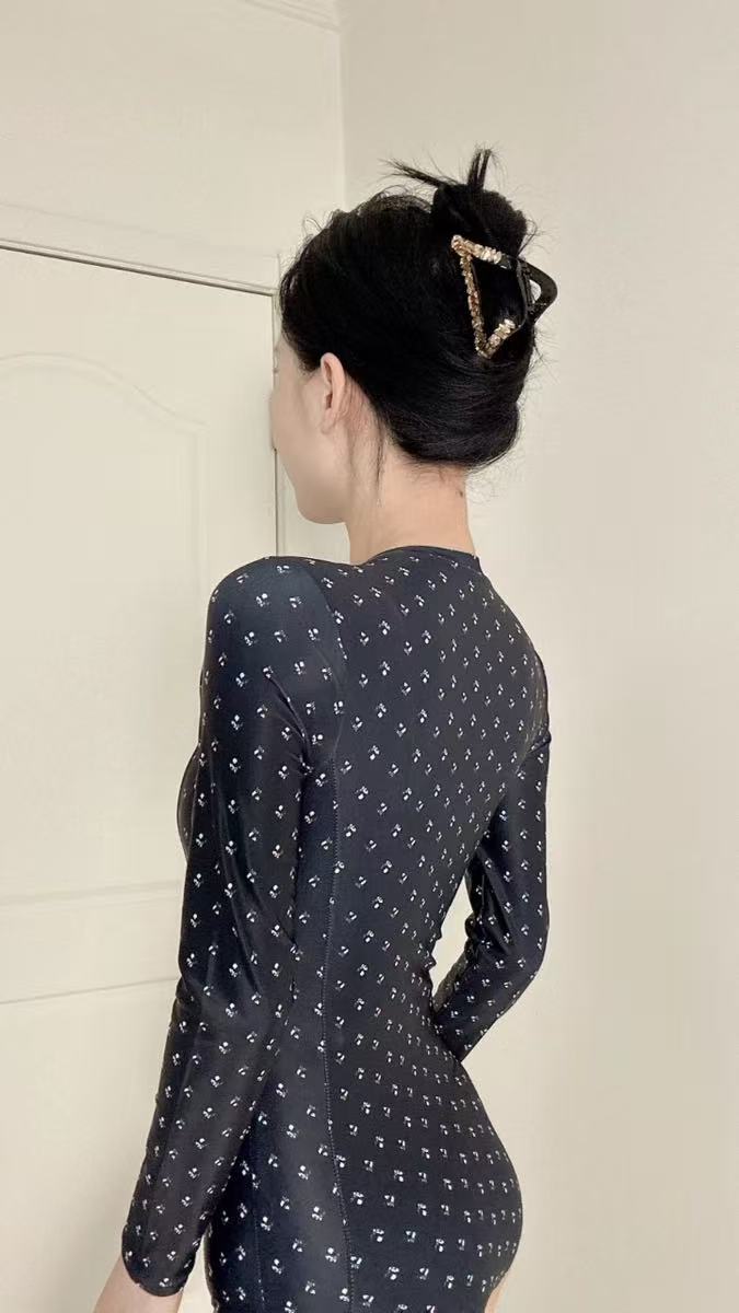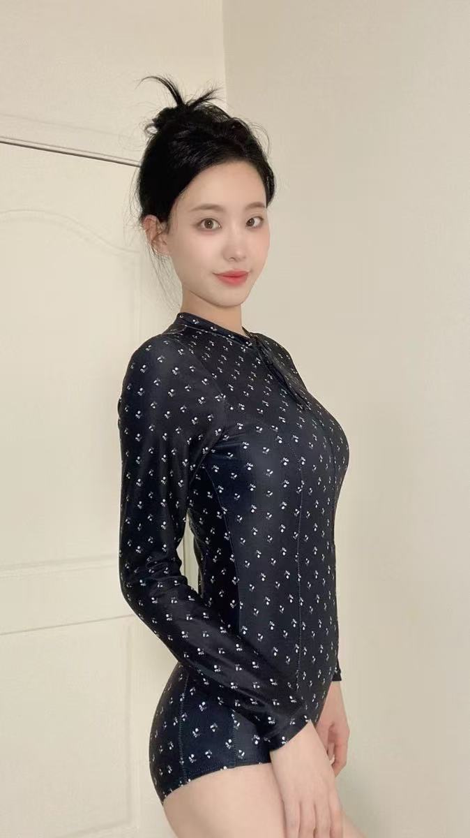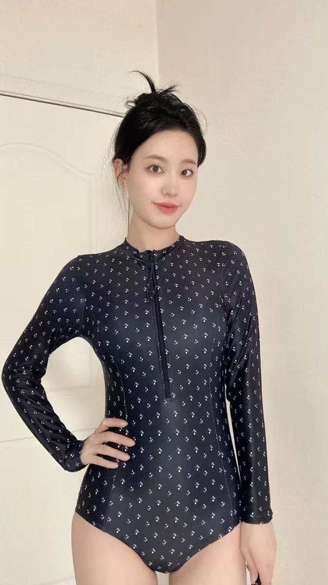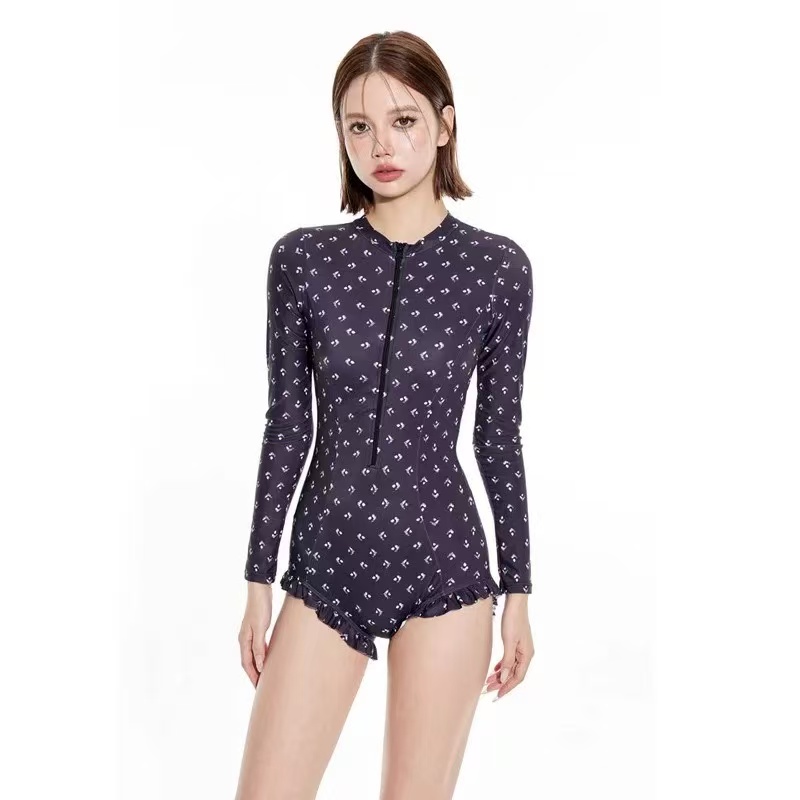 骨格ウェーブ 長袖 シュノーケリング ワンピース水着