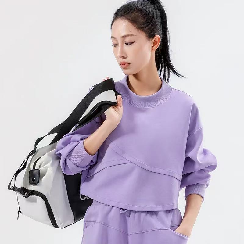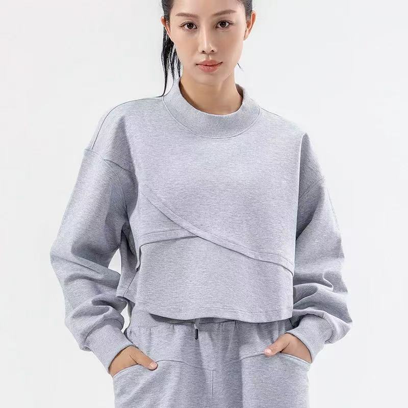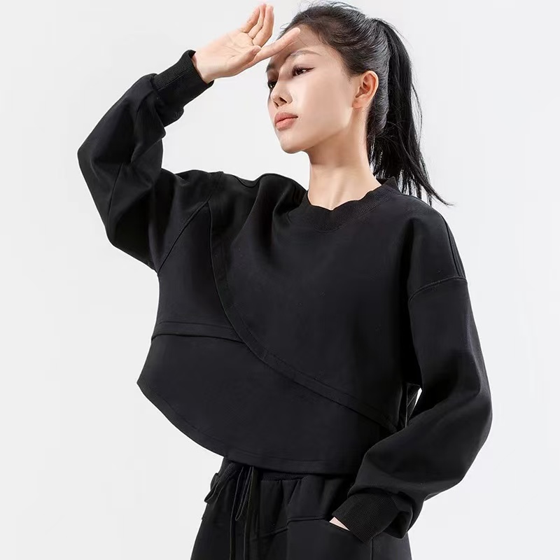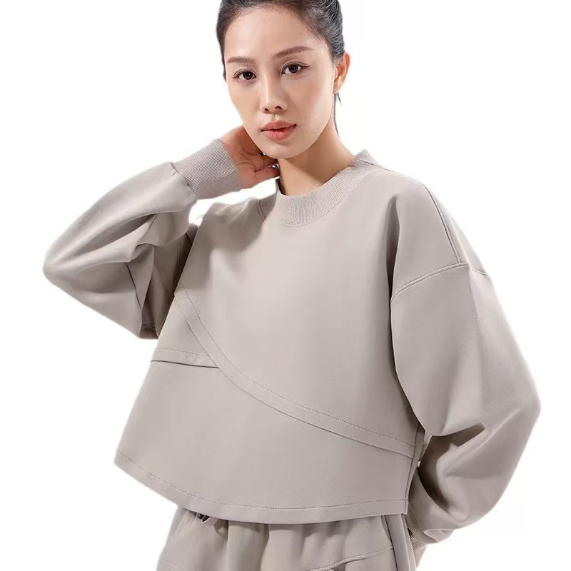 骨格ウェーブ フィットネスラウンドネックプルオーバー