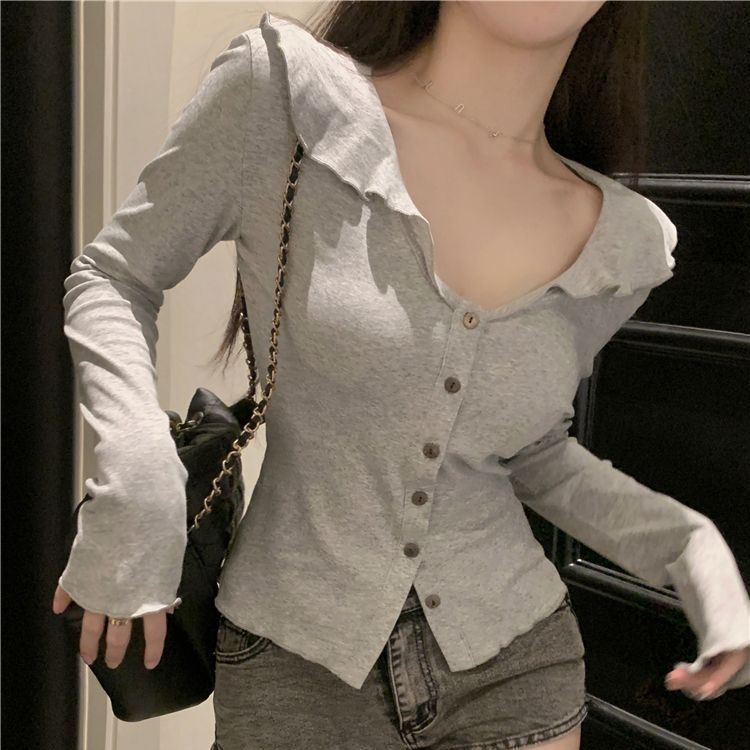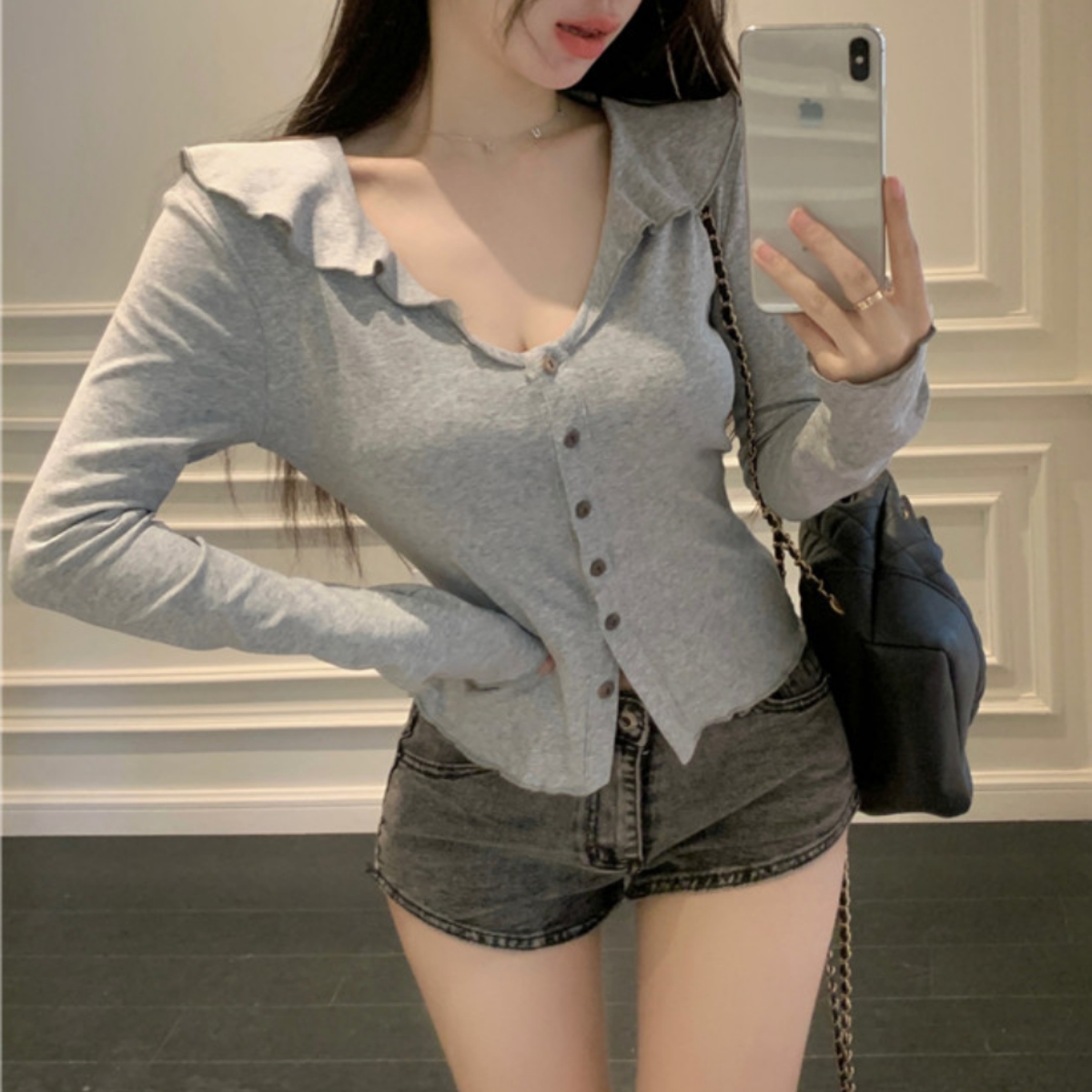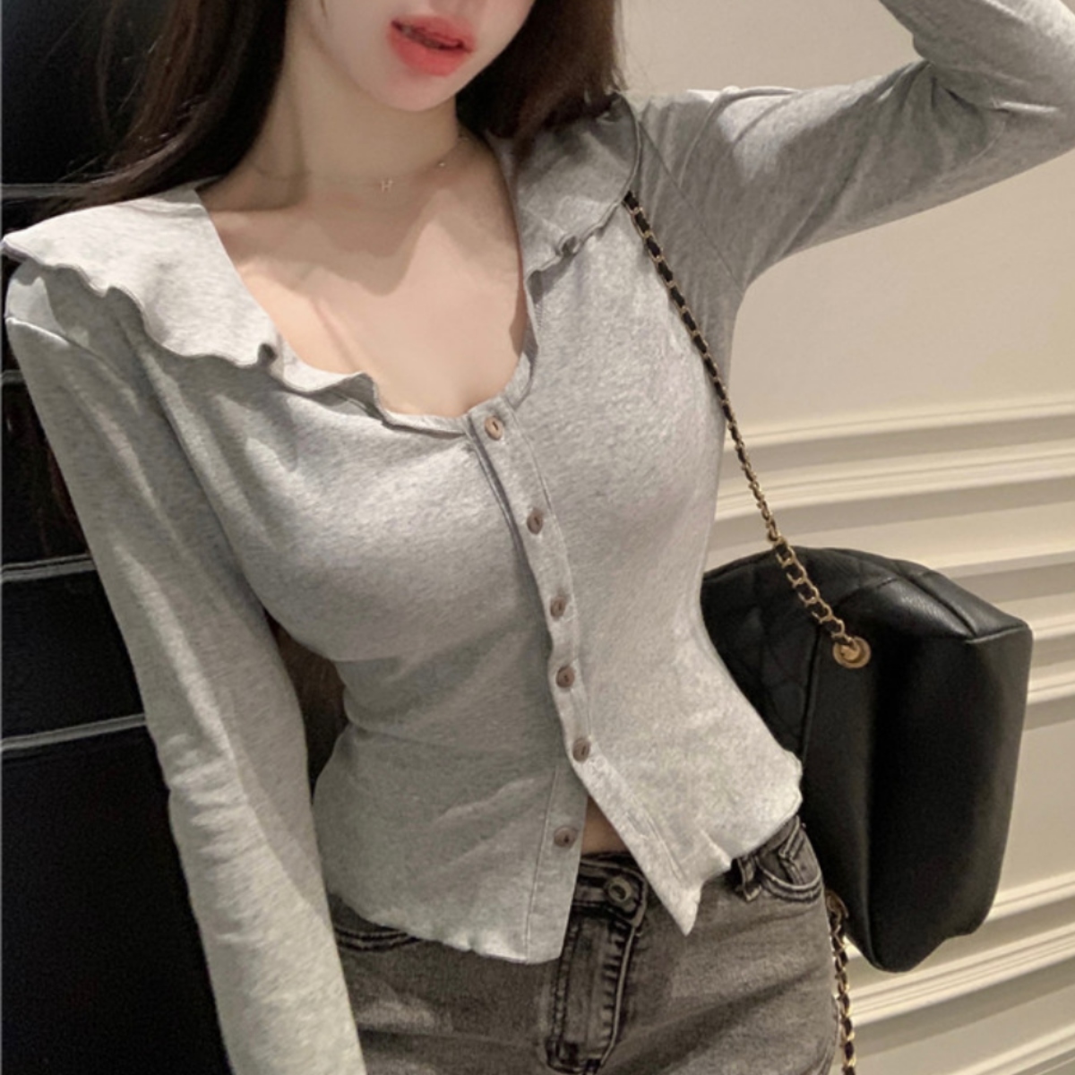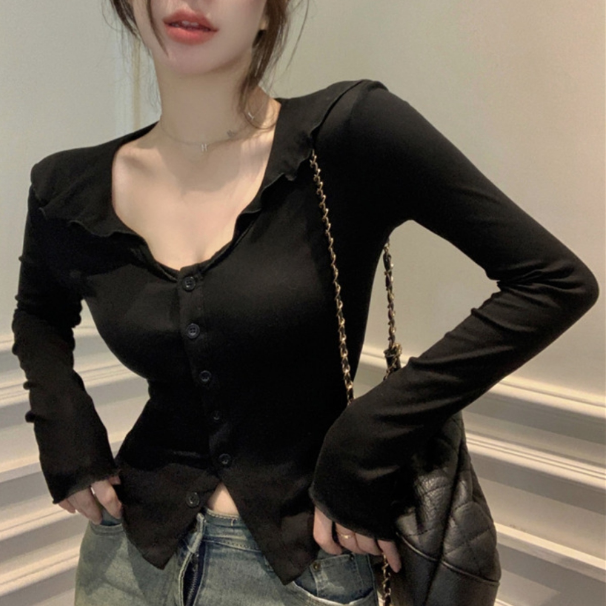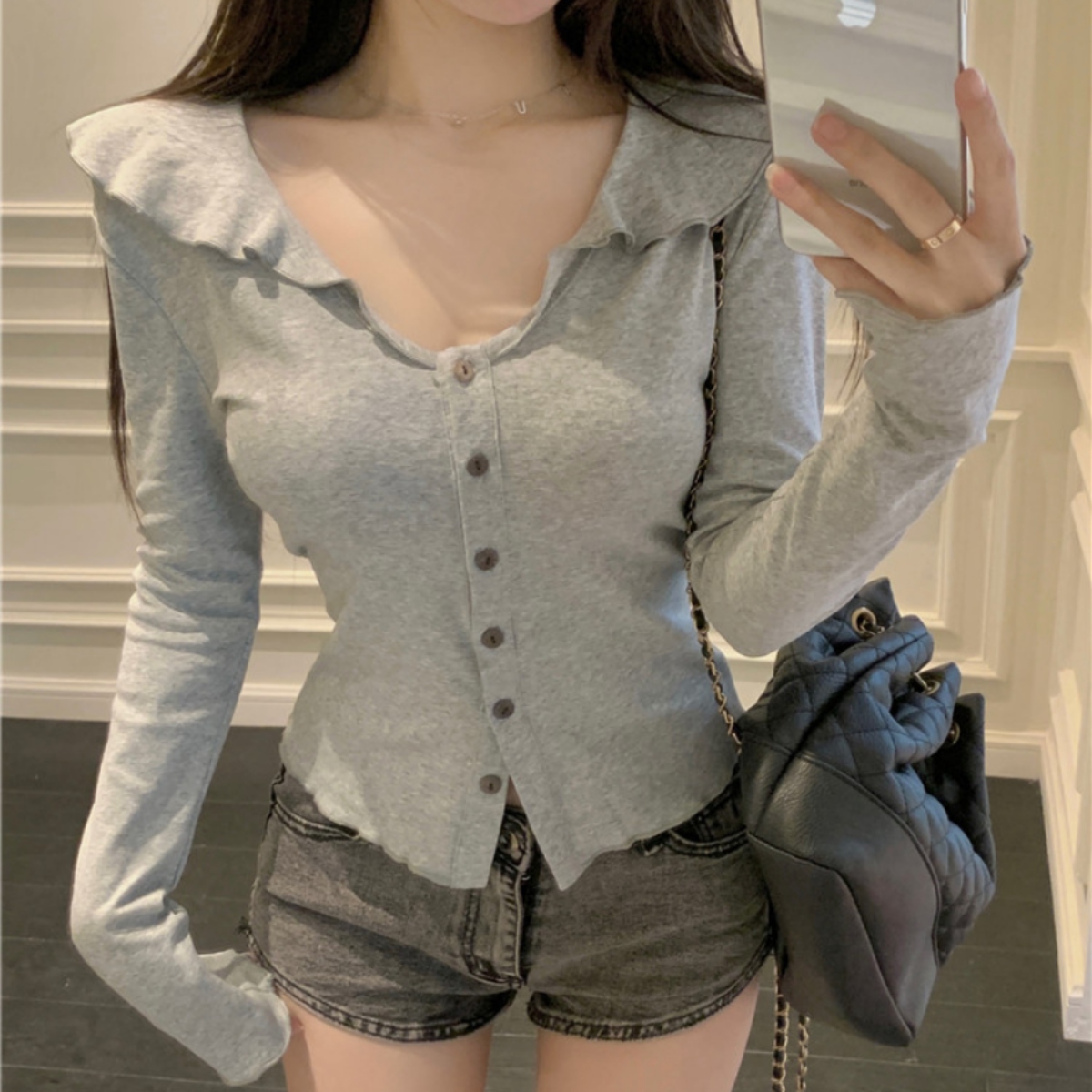骨格ウェーブ 華奢見えフリル襟 スリムフィットトップス