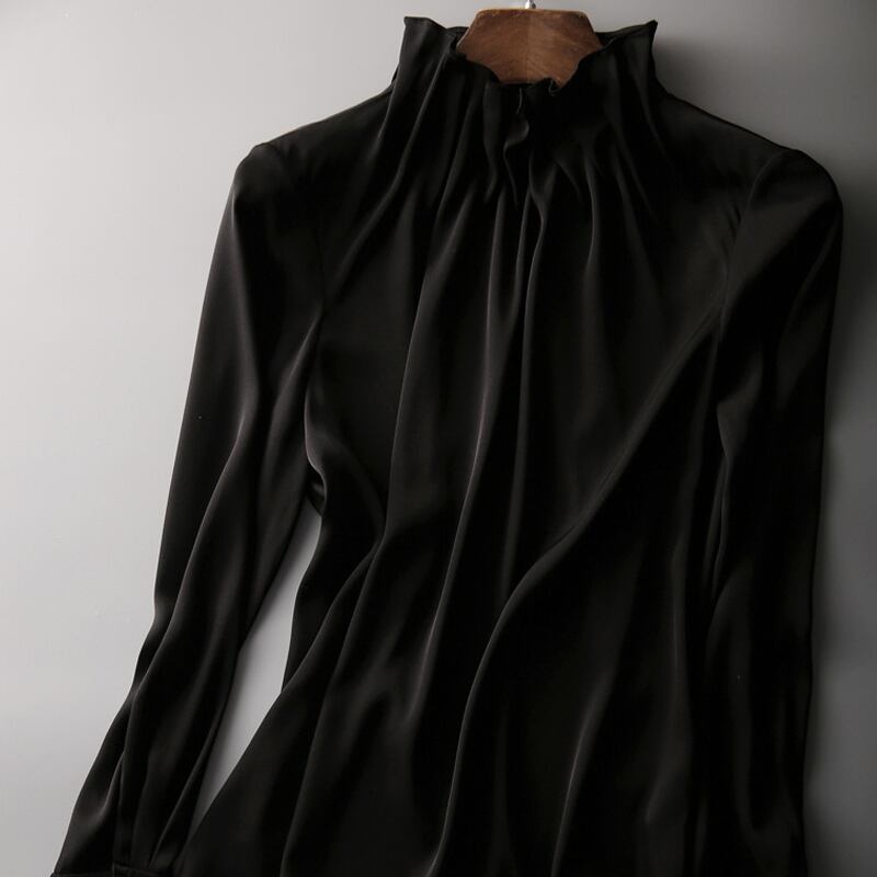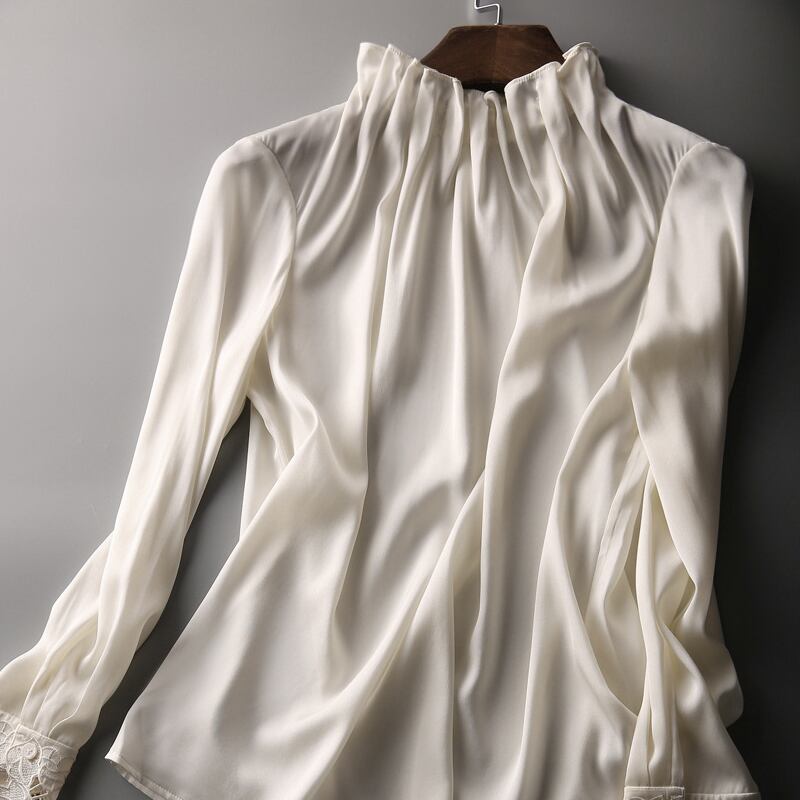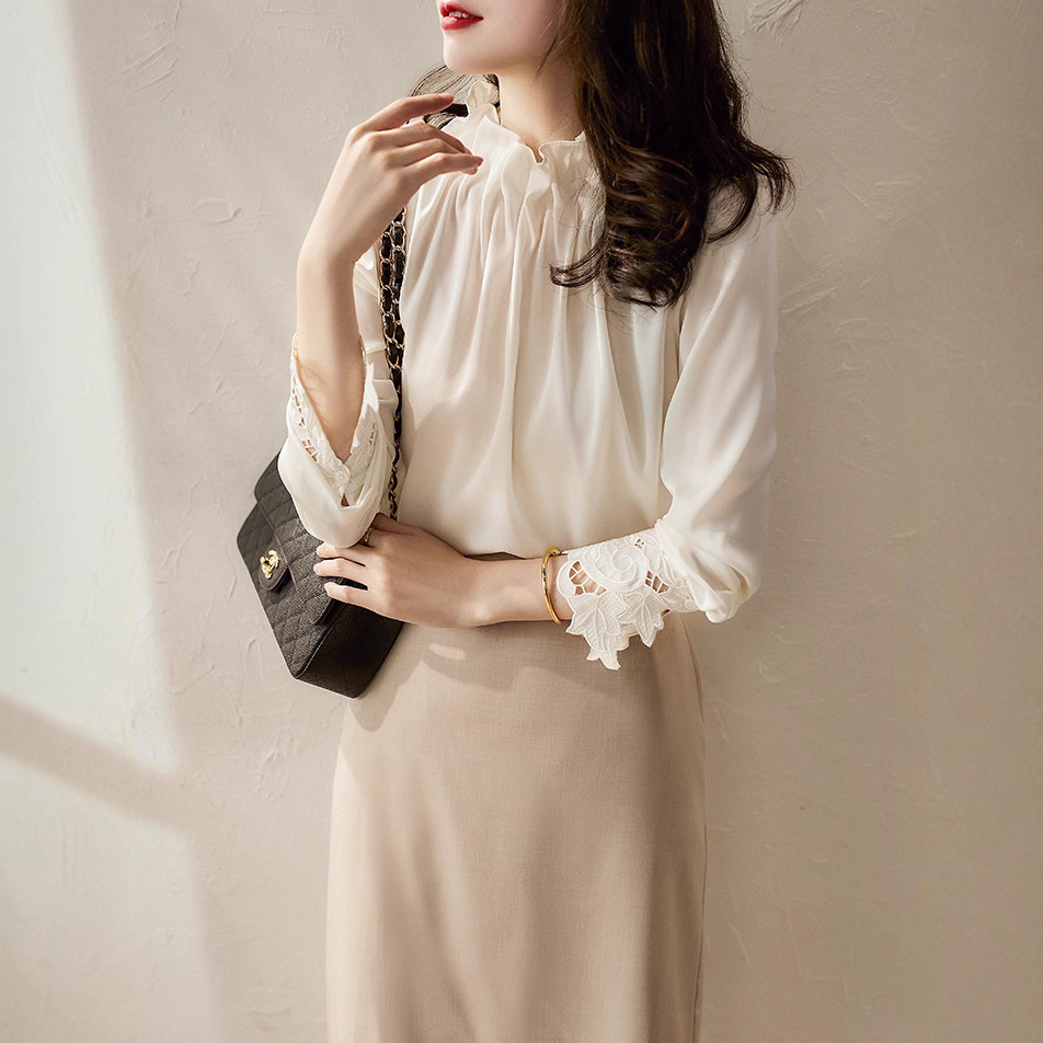 上半身が華奢な骨格ウェーブさんの魅力を最大限に引き出す、大本命のブラウスが登場です。 首元にほどよく詰まったフリルギャザーが、気になりやすいデコルテの薄さをさりげなくカバーし、顔まわりを華やかに演出。視線を自然に上へ集めることで、バランスよくスタイルアップを叶えます。 最大のポイントは、袖口に施した繊細なカットワークレース。動くたびに上品な可愛らしさを添え、装飾が得意な骨格ウェーブさんにぴったりのデザインです。 肌になじむ柔らかなとろみ素材も好相性。ハイウエストスカートにインすれば、オフィスからデートまで幅広く活躍する、清楚でフェミニンなスタイルが完成します。