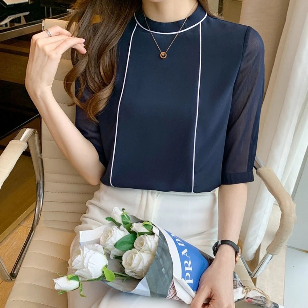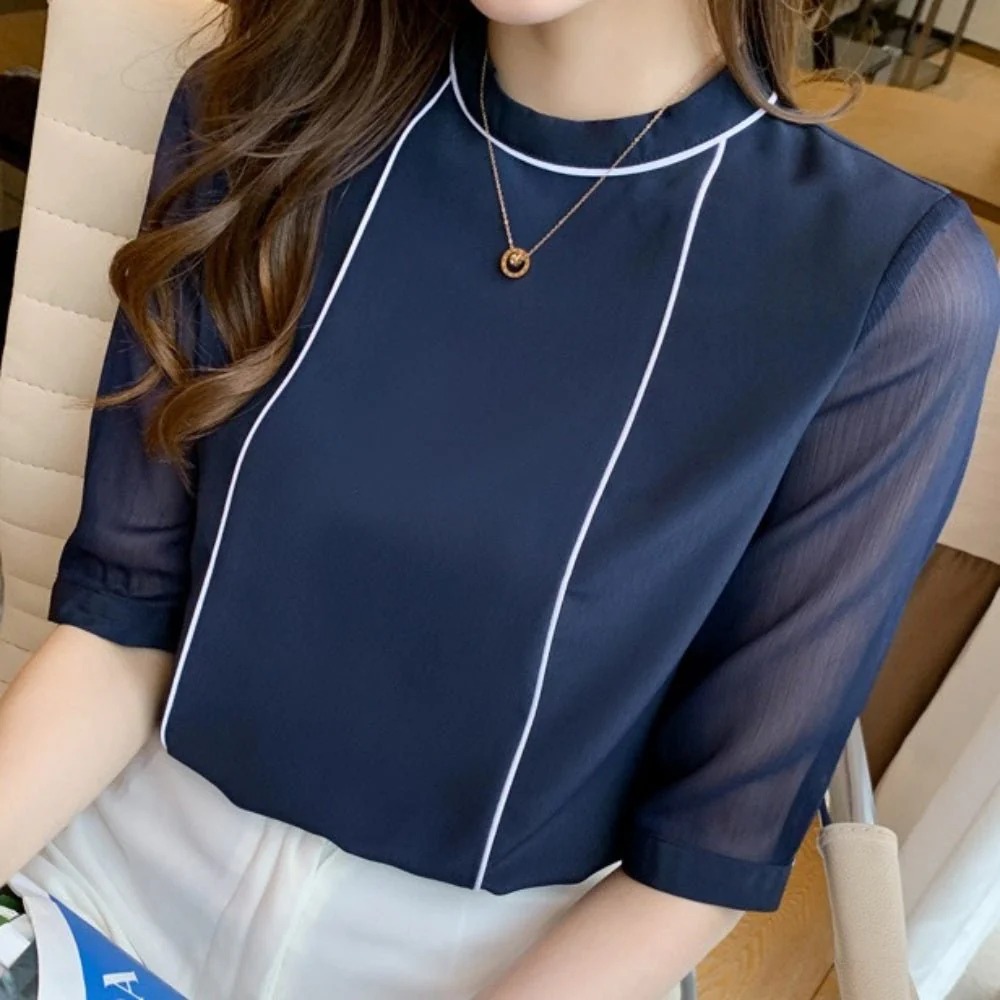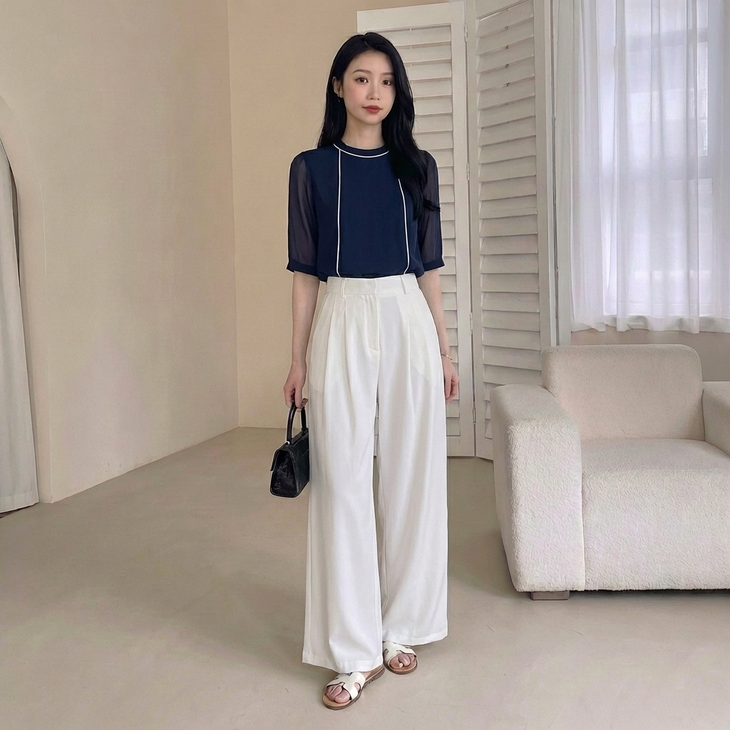 ネイビーとホワイトのバイカラーは、どんなシーンでもあなたを知的な女性に見せてくれます。