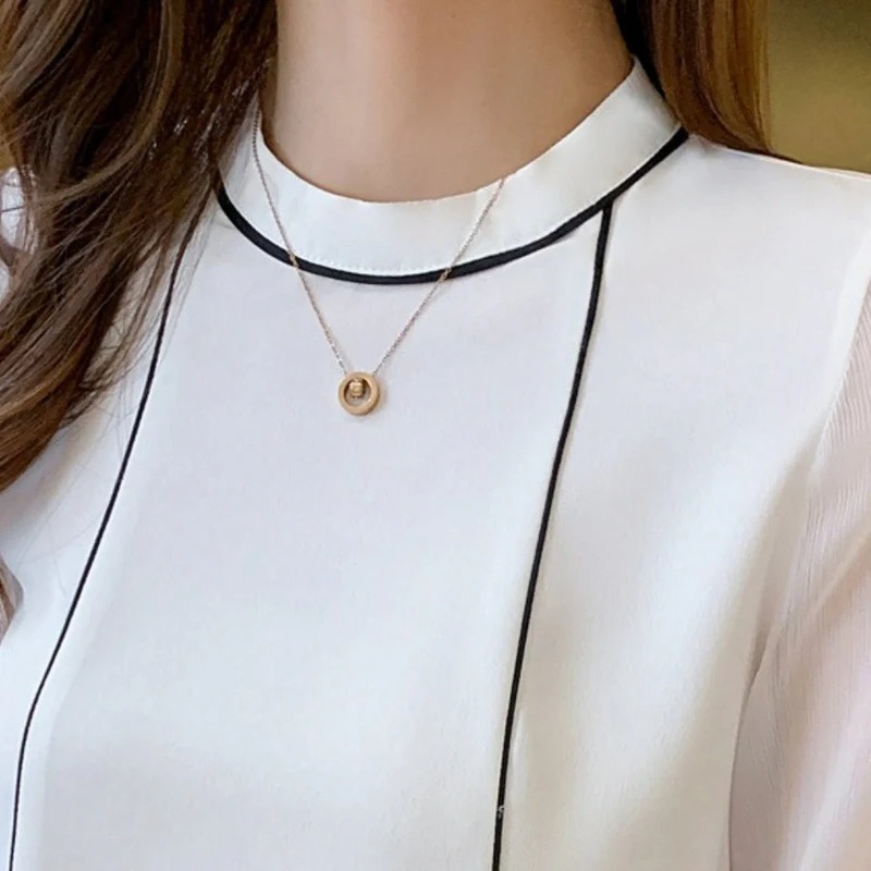「首元が開いたデザインだと、少し寂しい印象になってしまう。」