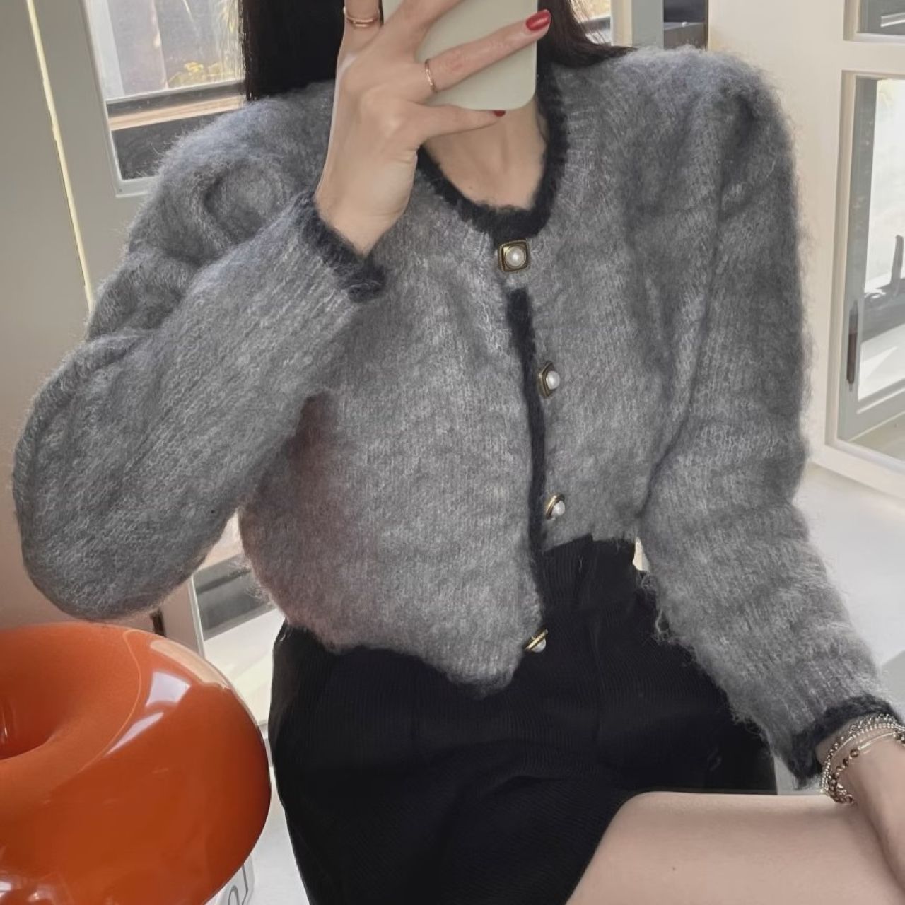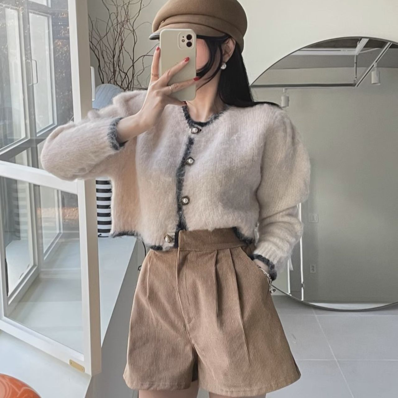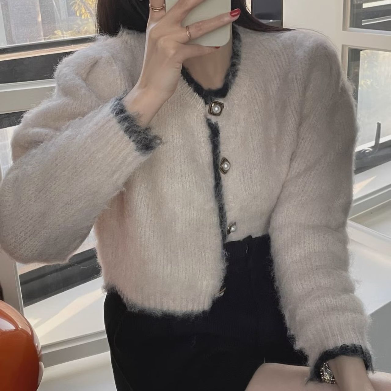 骨格ウェーブ ふんわり配色ニットカーディガン メタルボタン