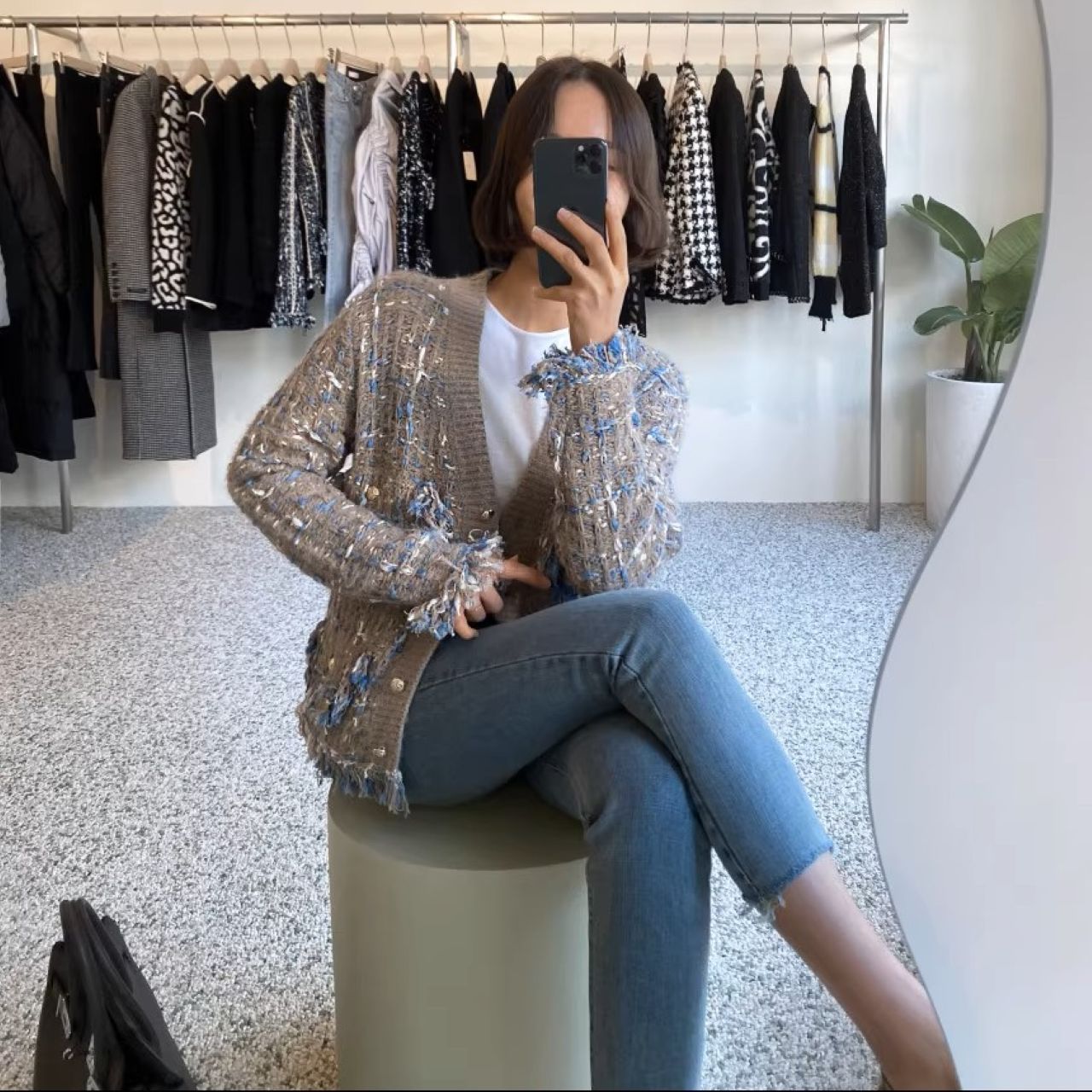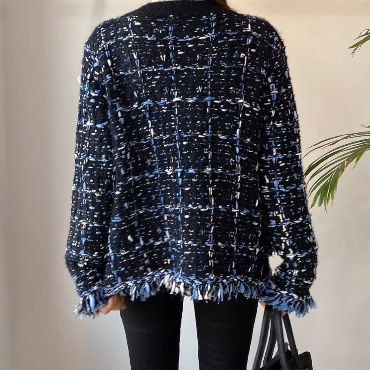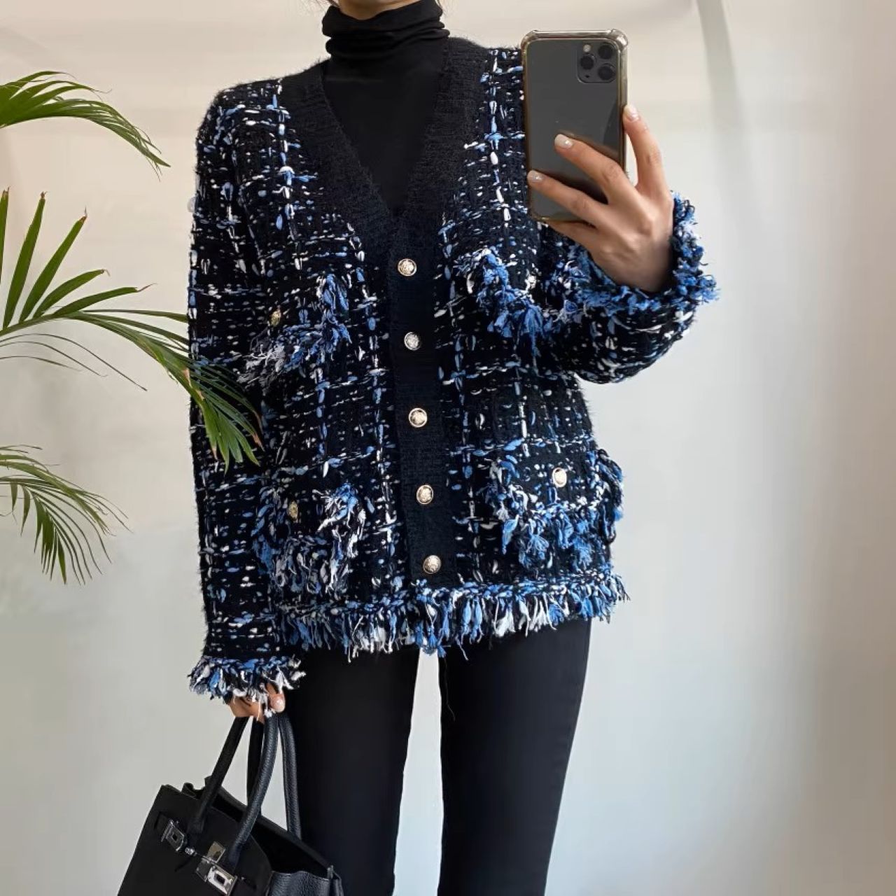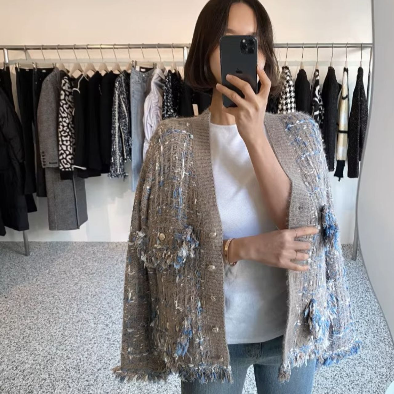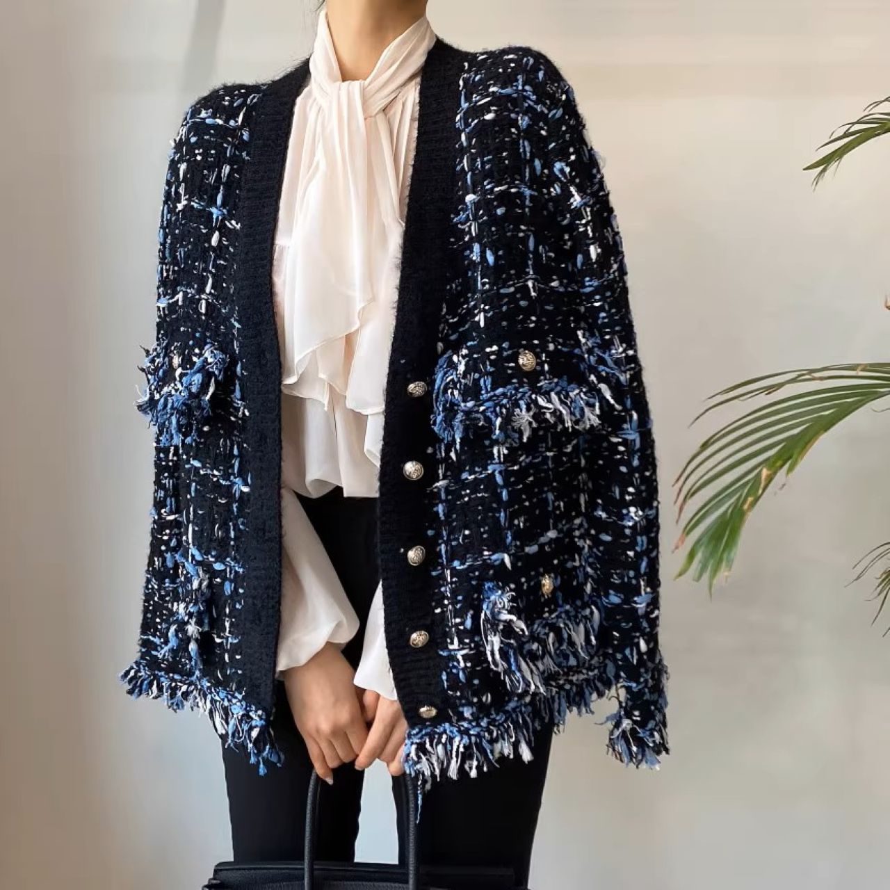 骨格ウェーブ MIXカラー フリンジニットカーディガン