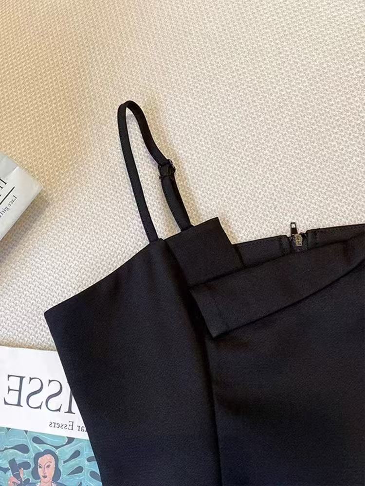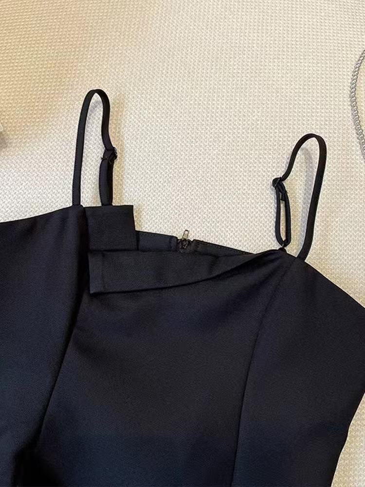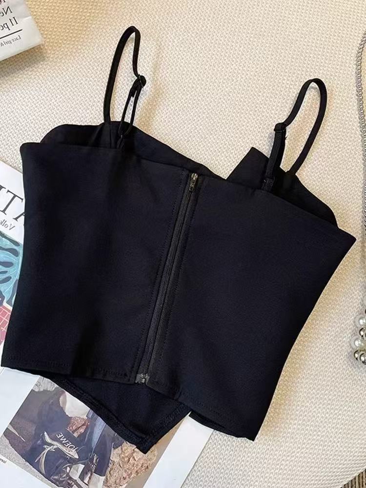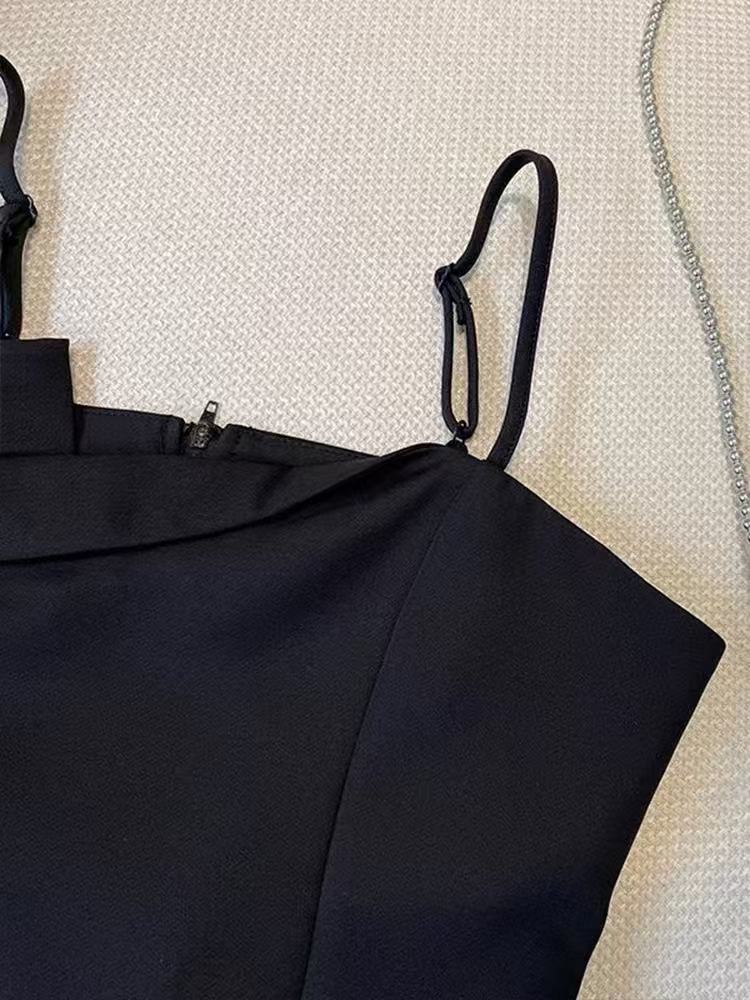 骨格ウェーブアシンメトリーブラックショートキャミソールベスト