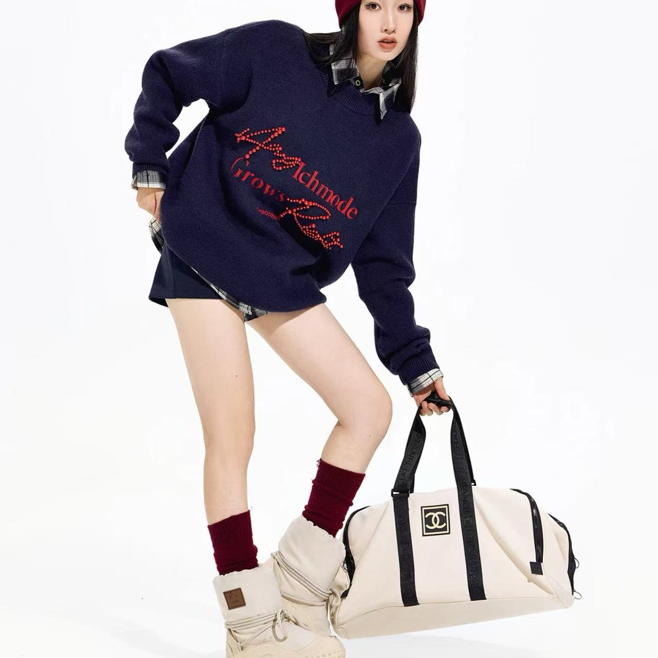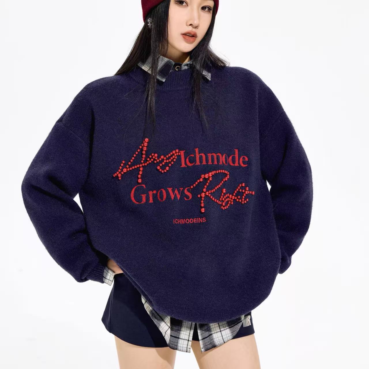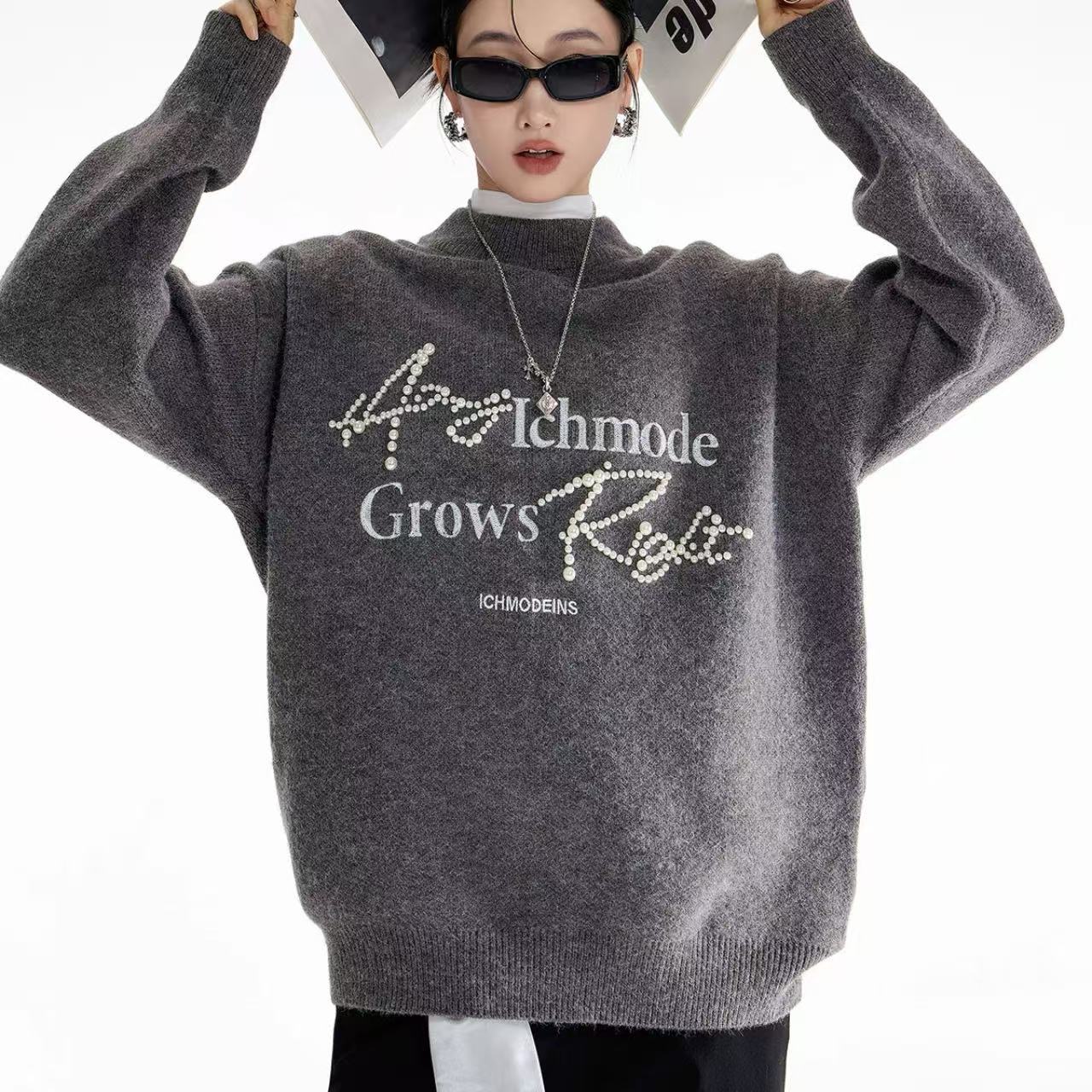骨格ウェーブさんにぴったりの【ICH MODE】アメリカンレトロ風パール付きクルーネックセーター。上品なパール装飾が顔まわりを華やかに演出し、柔らかくゆったりとしたシルエットが女性らしい曲線を美しく引き立てます。軽やかなニット素材で秋冬に快適な着心地。デニムやスカートにも合わせやすく、カジュアルにもエレガントにも着こなせる万能トップスです。オフィスやデートにもおすすめの一枚。