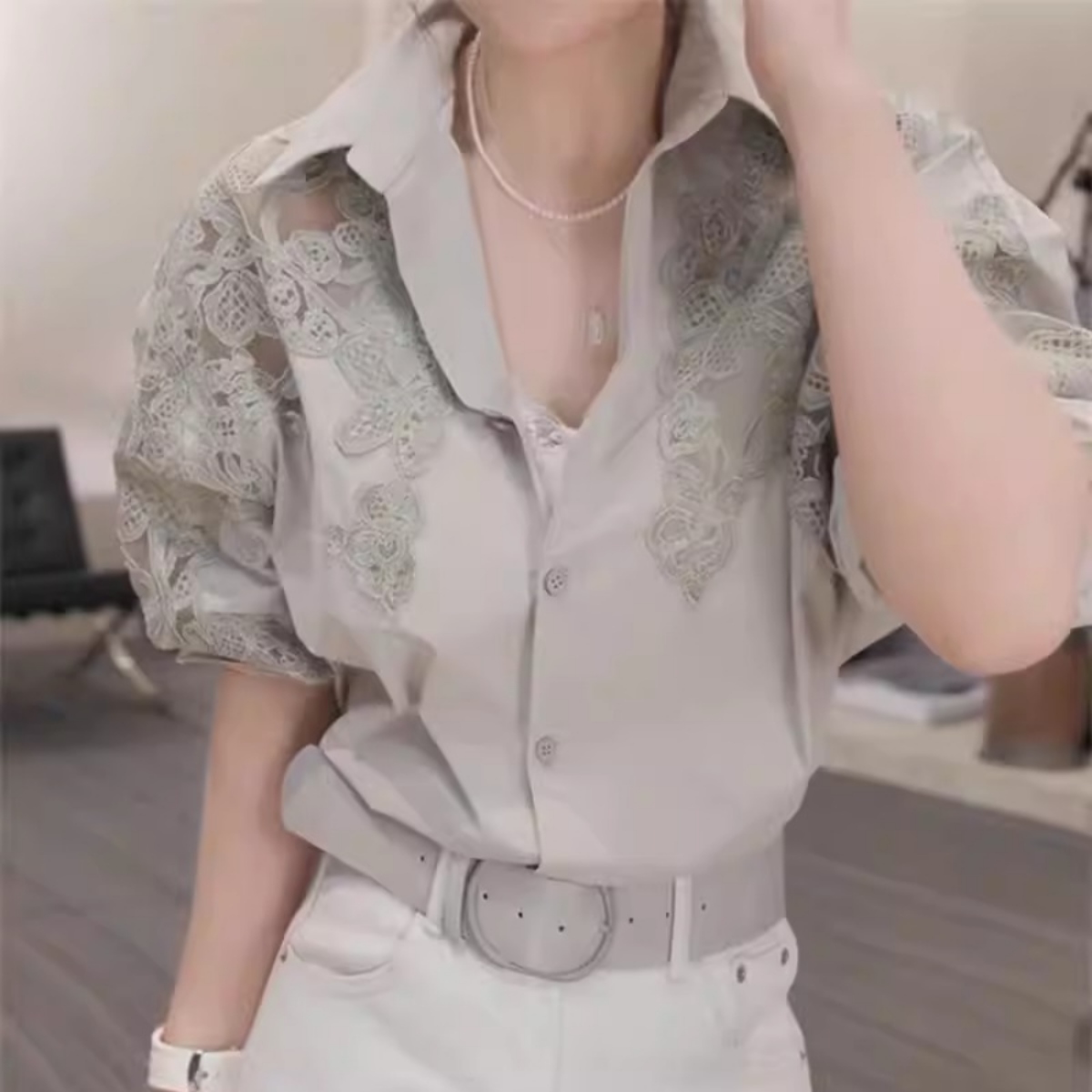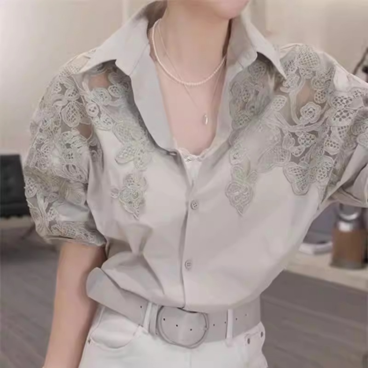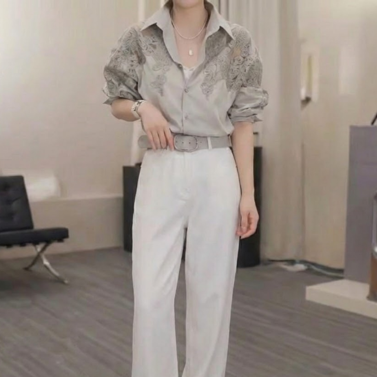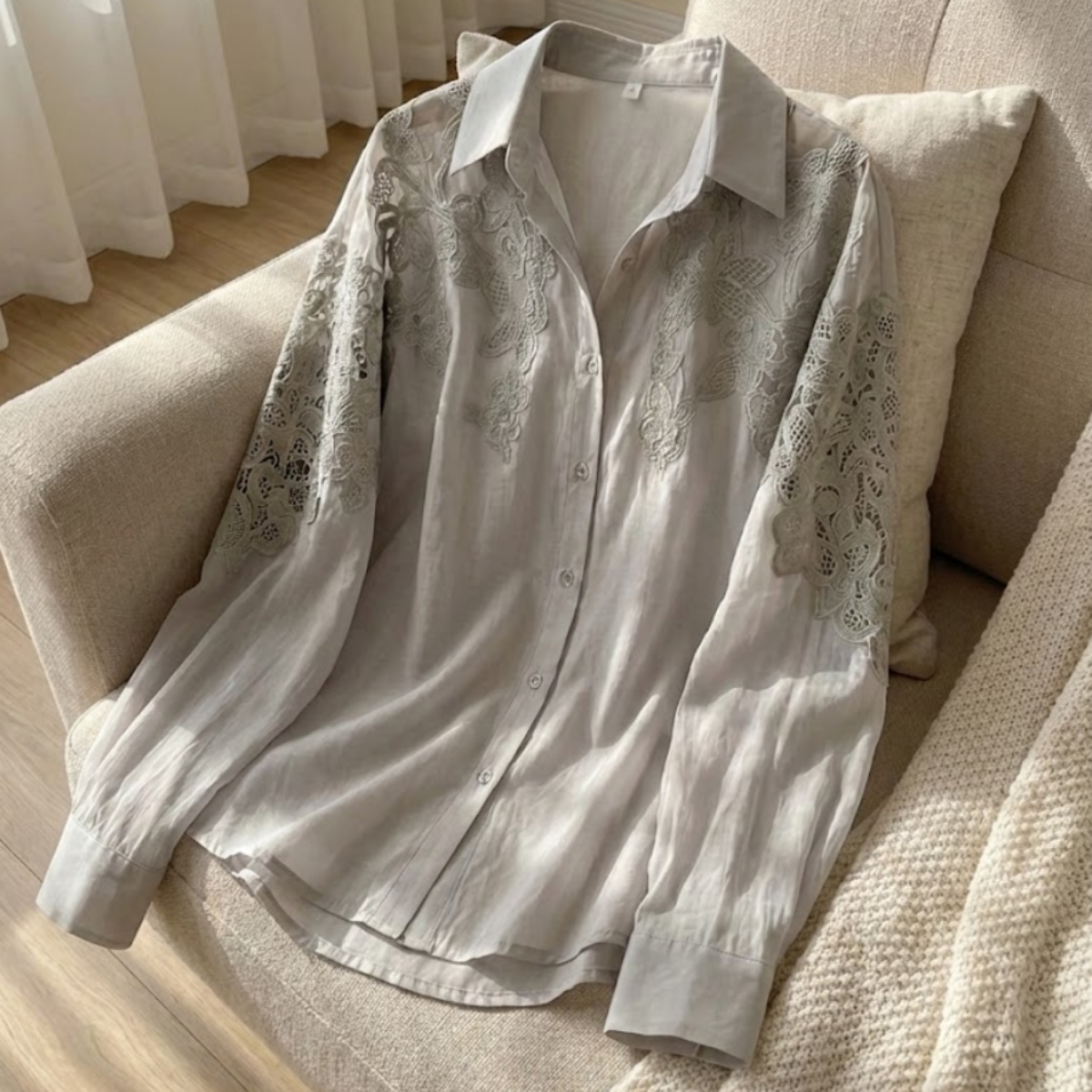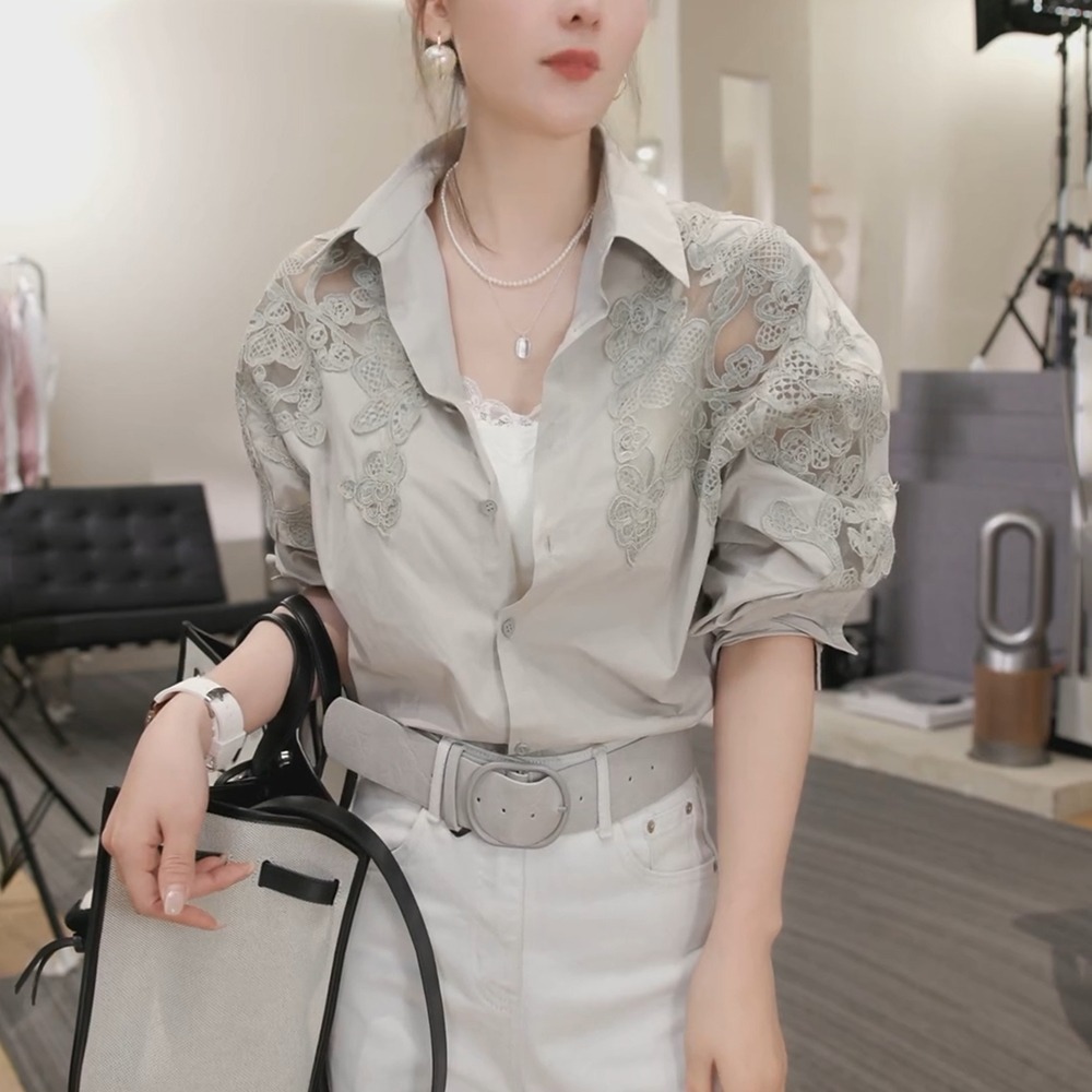 華やかなレース切替と程よいシアー感が、上半身を美しく見せてくれる骨格ウェーブ向けシャツ。やわらかな素材が体のラインになじみ、上半身の寂しさを自然にカバーします。デコルテをきれいに見せる襟元デザインで、女性らしい抜け感を演出。パンツにもスカートにも合わせやすく、きれいめからカジュアルまで幅広く活躍する大人フェミニンな一枚です。