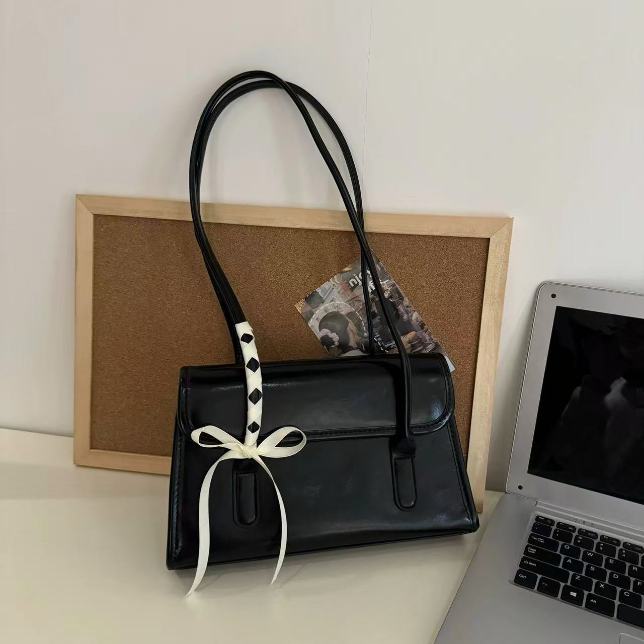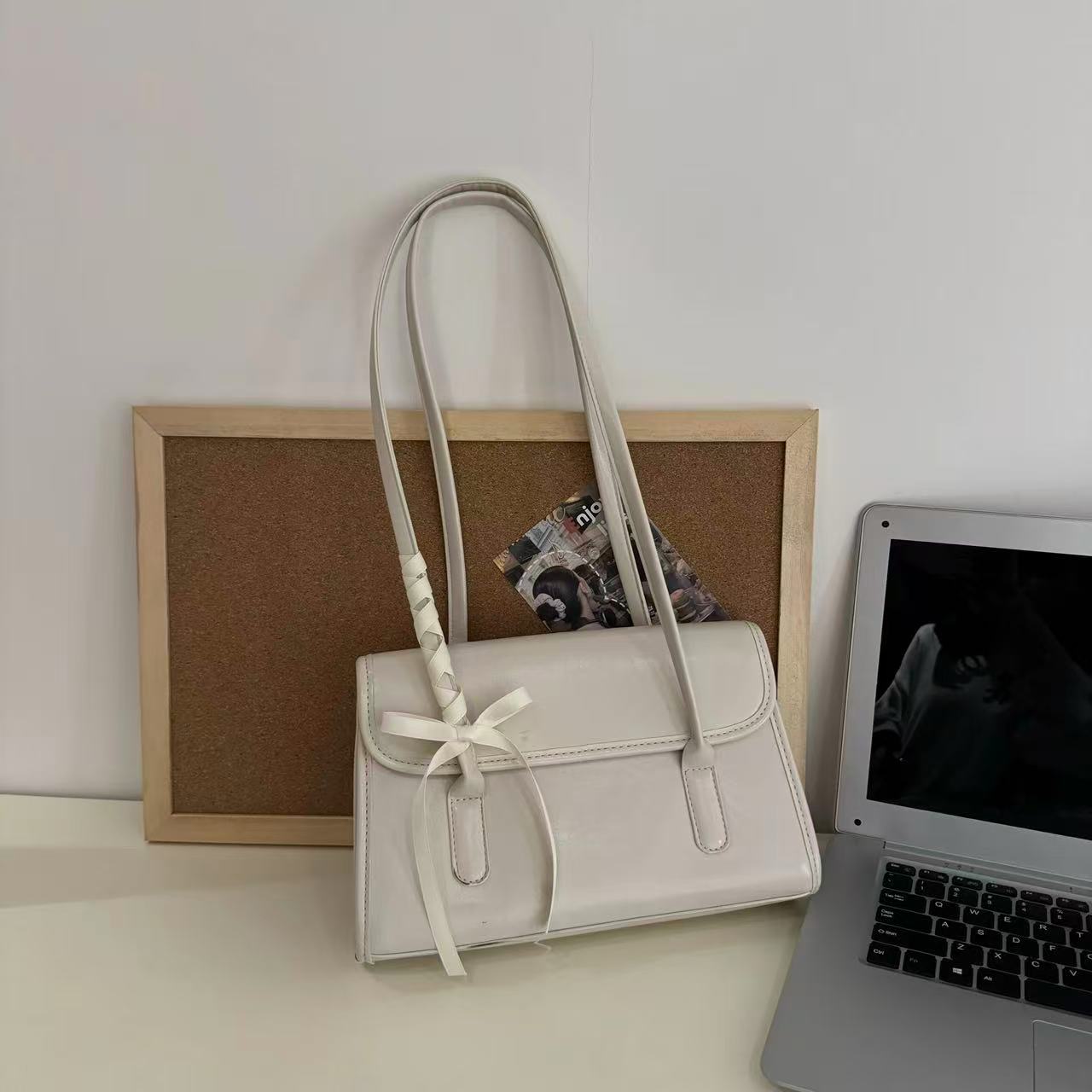 このワンショルダーバゲットバッグは、シンプルながらもこだわりのあるデザインが魅力で、どんなコーディネートにもマッチします。ネクタイ付きのスタイルは、おしゃれにさらなるアクセントを加え、カジュアルからフォーマルまで幅広いシーンで活躍します。