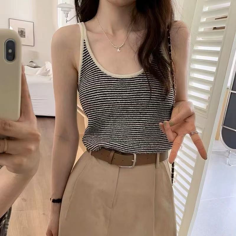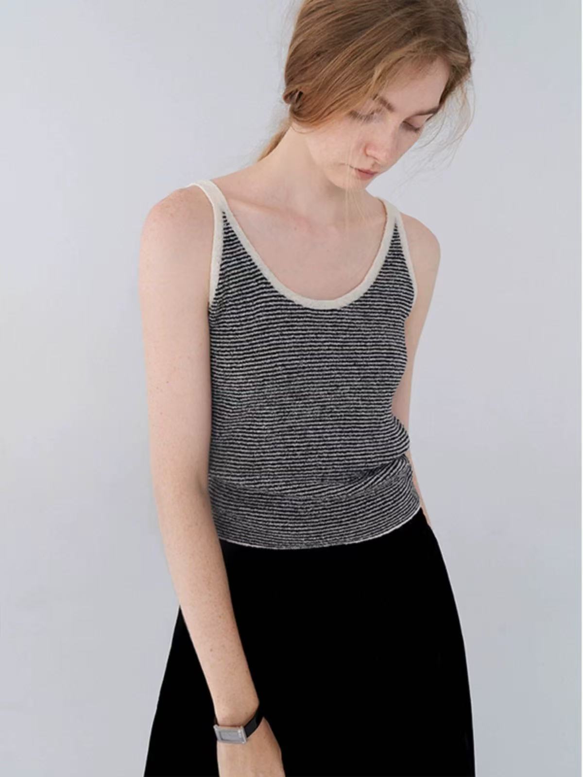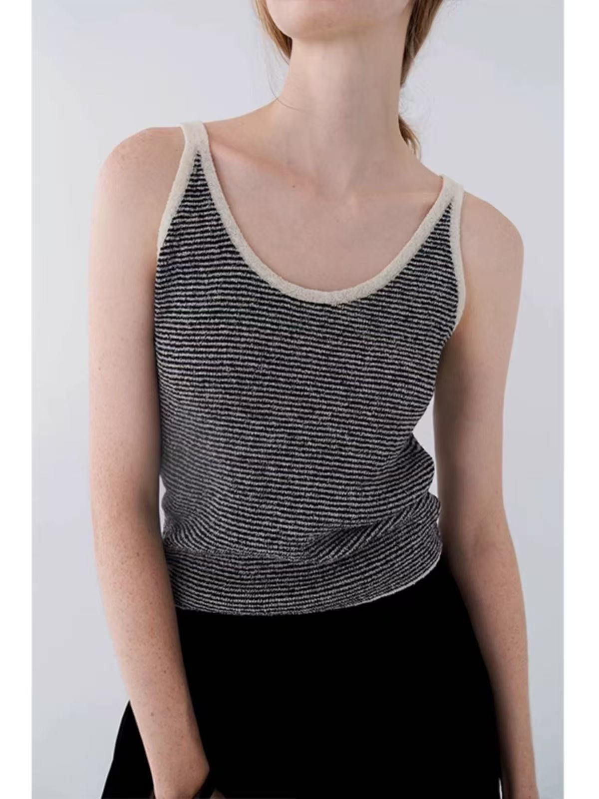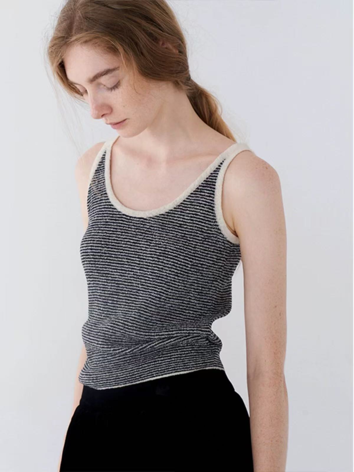 骨格ウェーブ ラウンドネックボーダーキャミソール