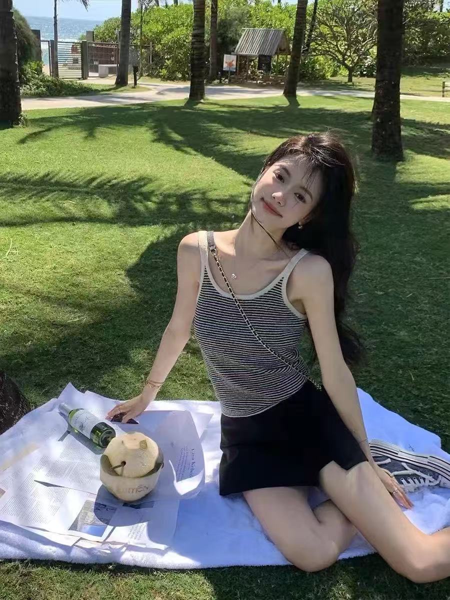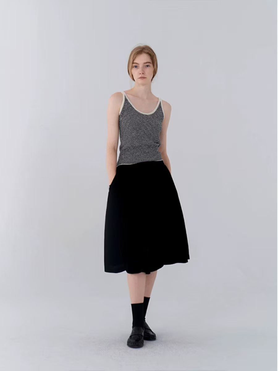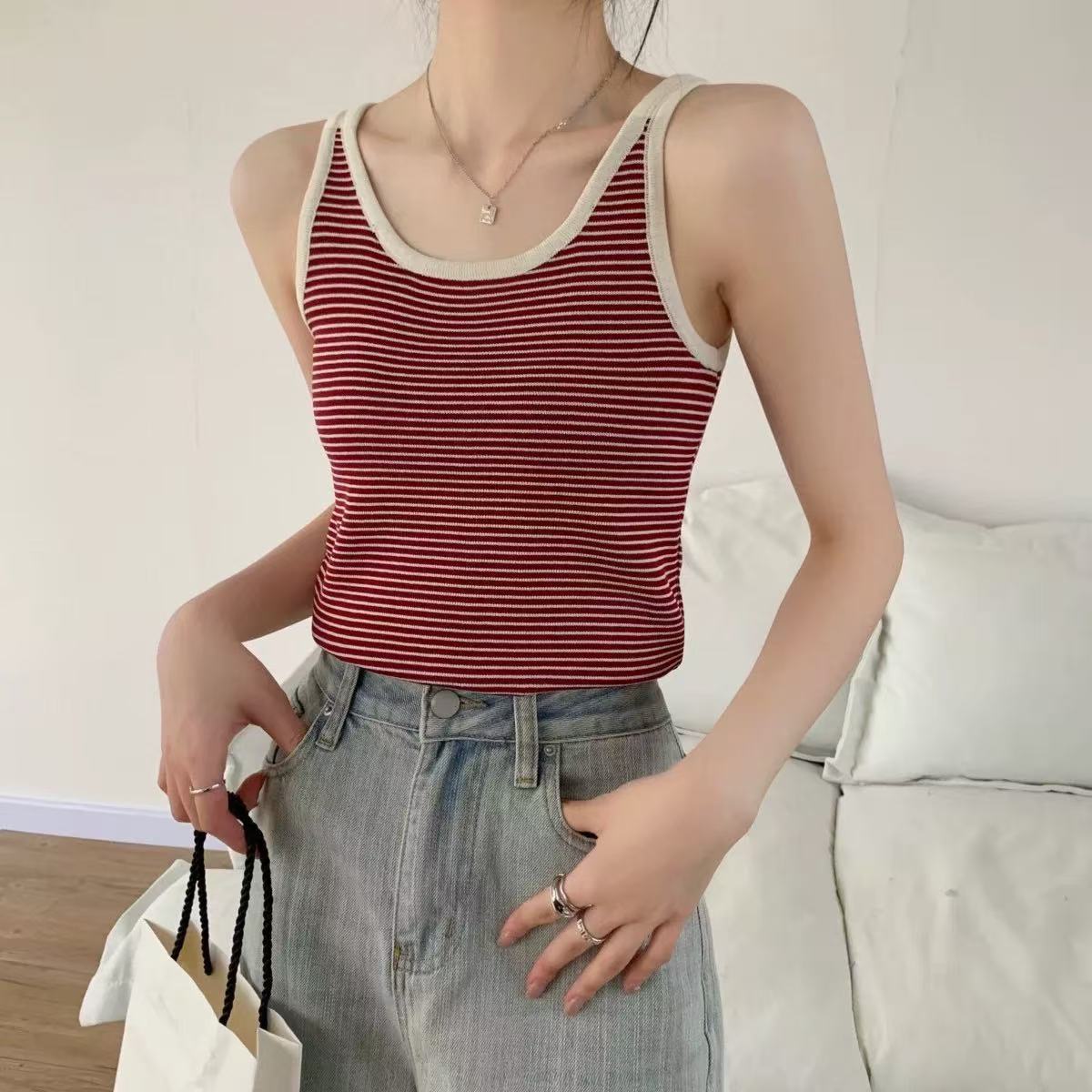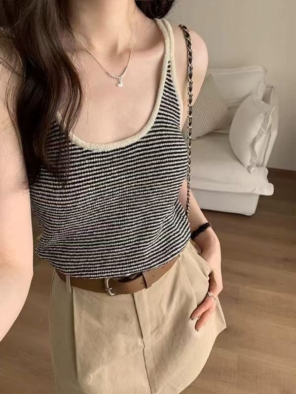 骨格ウェーブ ラウンドネックボーダーキャミソール