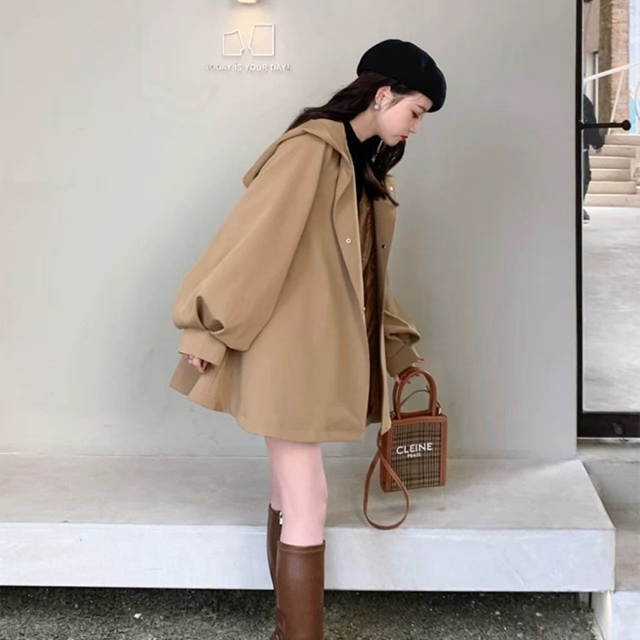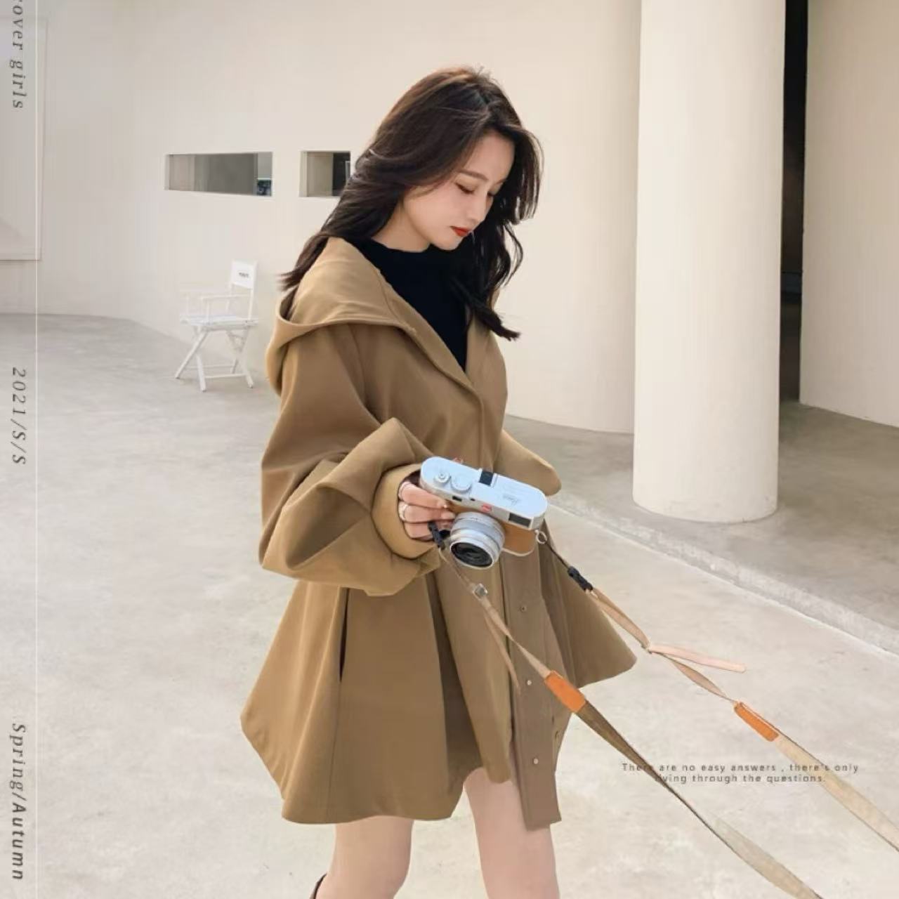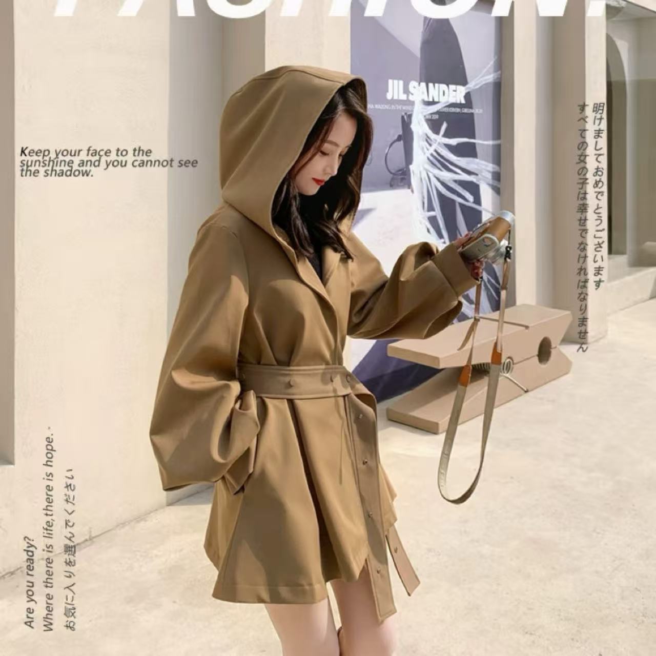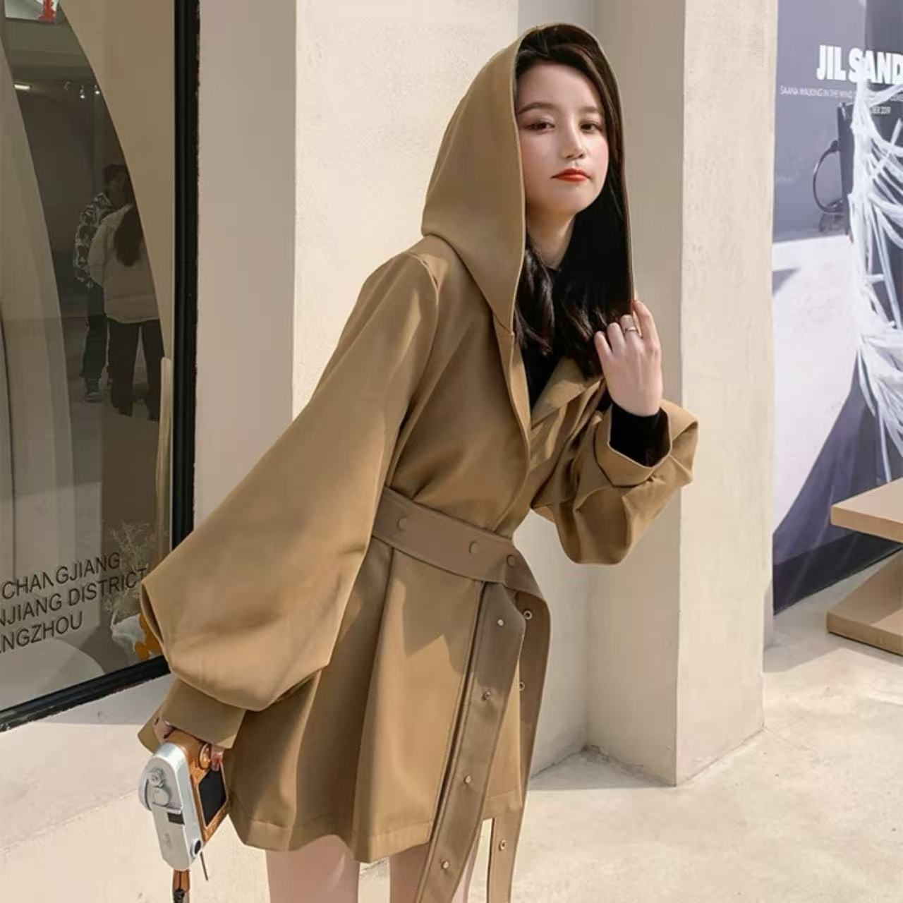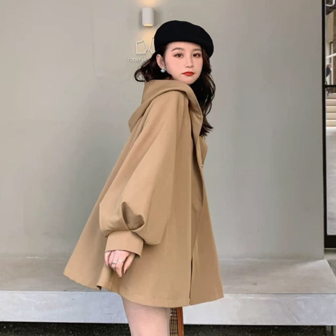 【ベージュケープウィンドブレーカージャケット 2025年秋冬新作】は、今季注目の万能アウター。 上質な素材とルーズシルエットが魅力で、軽やかな着心地とスタイリッシュなカジュアル感を兼ね備えています。 小さめのフードが上品なアクセントとなり、骨格ウェーブの華奢なラインを女性らしく引き立てます。 シンプルながら存在感のあるデザインで、日常のコーディネートはもちろん、アウトドアや休日のお出かけにも幅広く活躍。 大人の秋冬スタイルに欠かせない一着です。