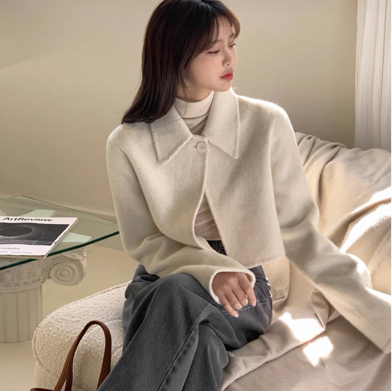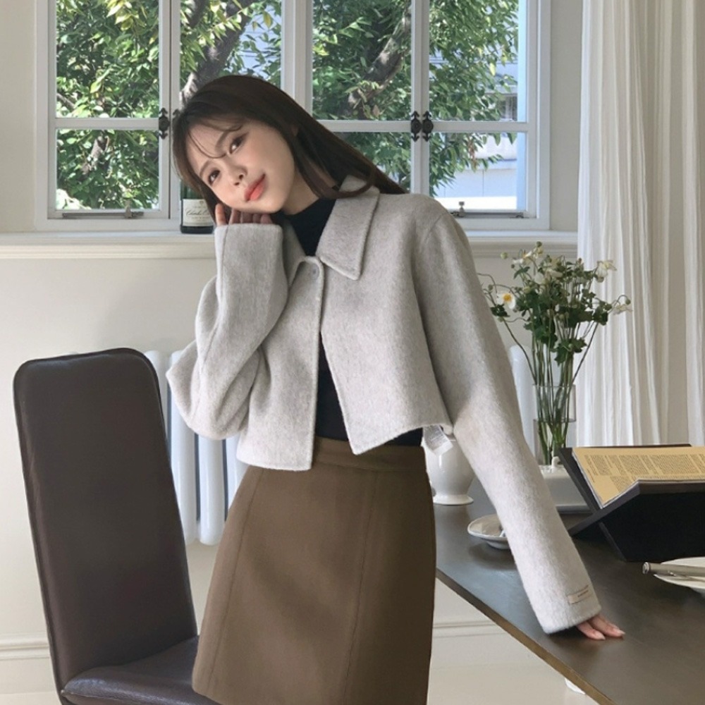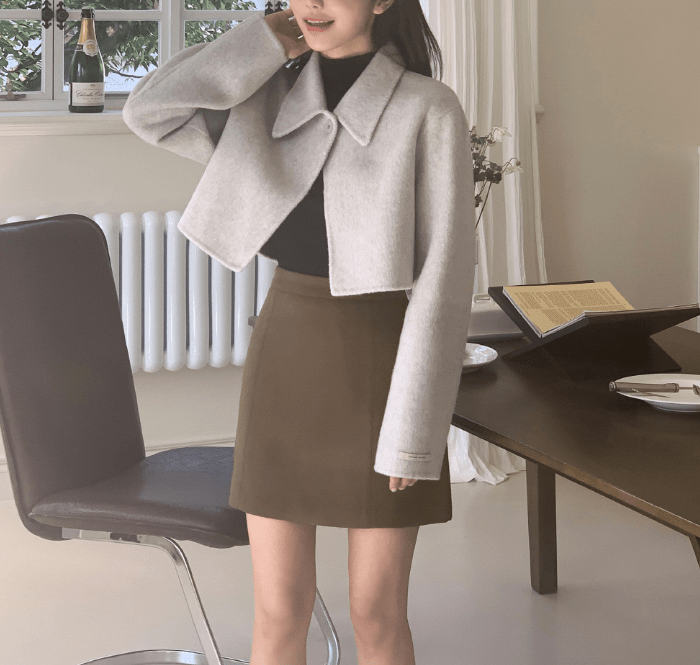 骨格ウェーブ 襟付き シンプル ウールライク ショートコート