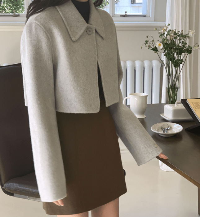 骨格ウェーブさんの体型を美しく引き立てる、襟付きデザインのウールライクショートコート。コンパクトな着丈と程よくフィットするシルエットが、上半身をすっきり見せます。やや大きめの襟は顔まわりに立体感を与え、デコルテラインをきれいに演出。柔らかなウール調素材で、上品さと温かみを両立しました。シンプルなデザインなので、デニムからスカート、ワンピースまで幅広く合わせやすく、オン・オフ問わず活躍。羽織るだけで女性らしいバランスが完成する、大人のための一着です。