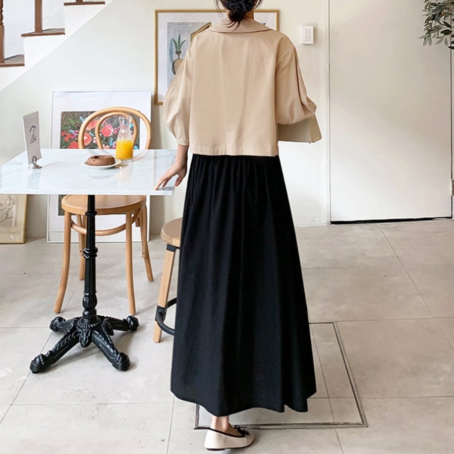 程よいハリ感のある素材で体のラインを拾いすぎず、きちんと感と女性らしさを両立します。