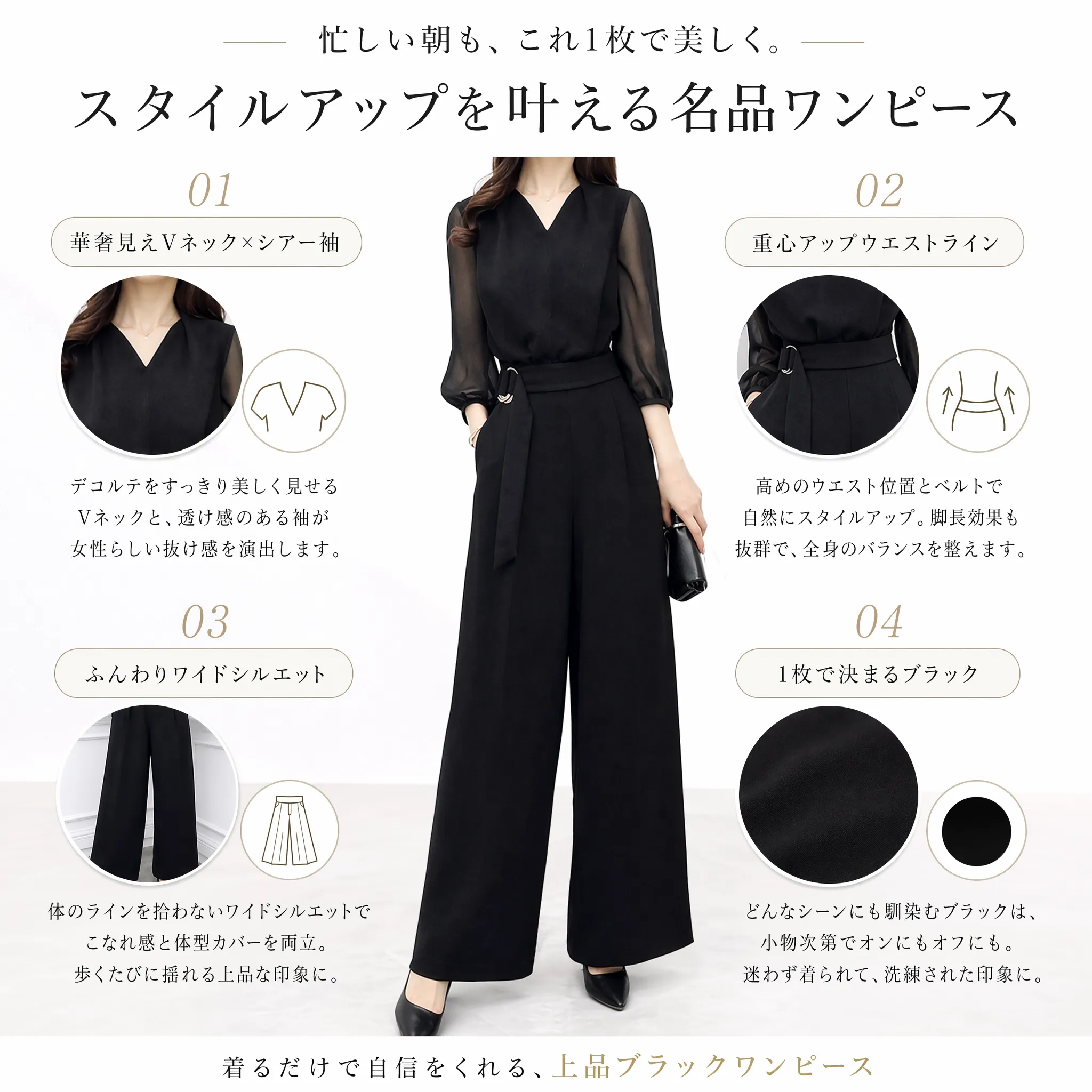 このオールインワンは、そんな似合いにくさを前提に設計された一着。着るだけで自然とバランスが整い、あなた本来の魅力を引き出します。