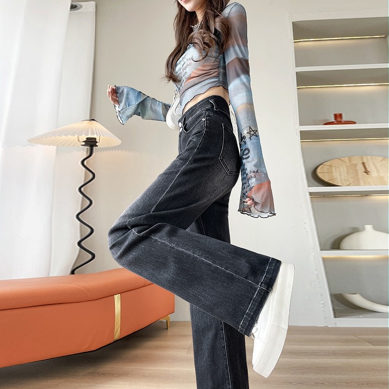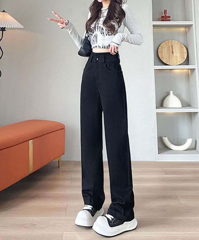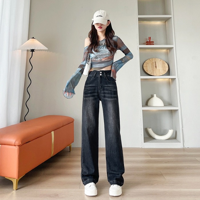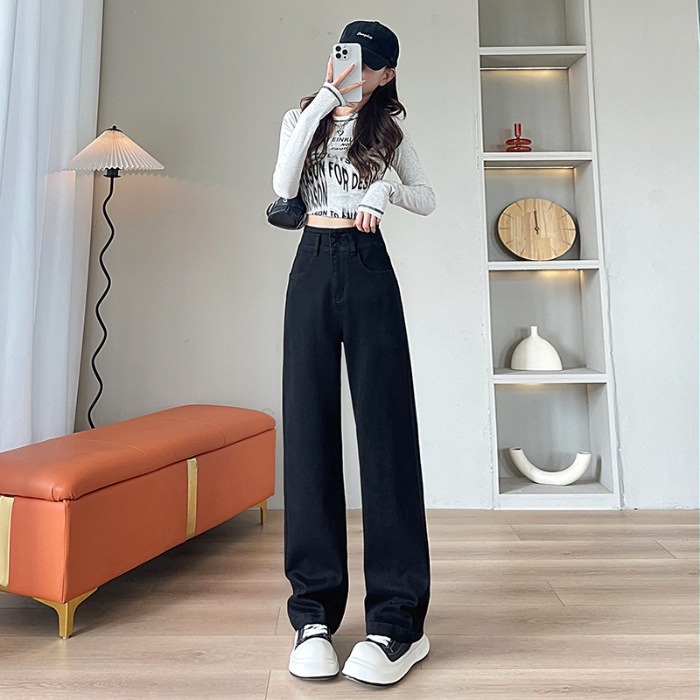 絶妙な太さのストレートワイドシルエットが下半身のボリュームをカバーしつつ、ストレッチの効いた柔らかなデニム生地で快適な履き心地も実現。