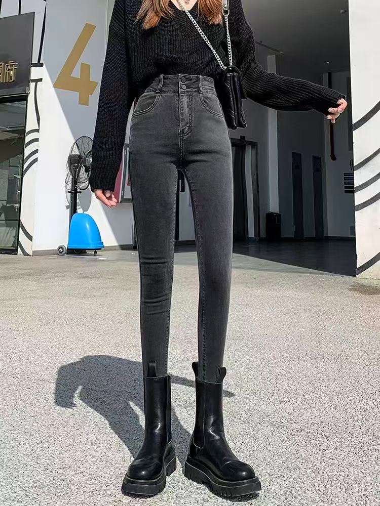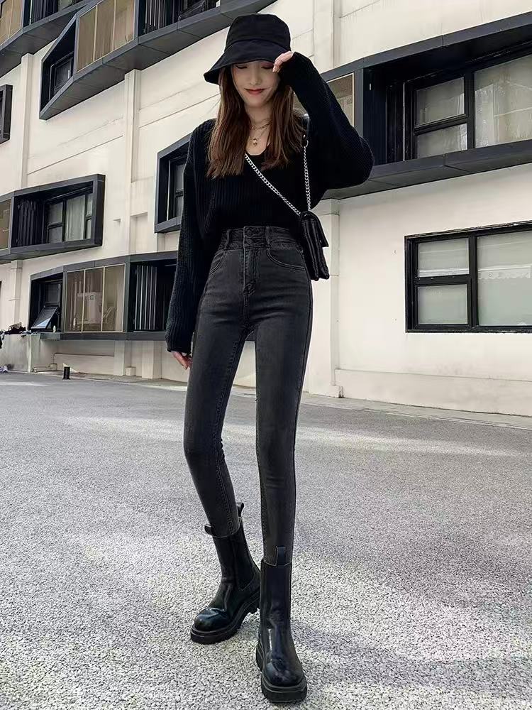 骨格ウェーブ服ハイウエストスキニーパンツ