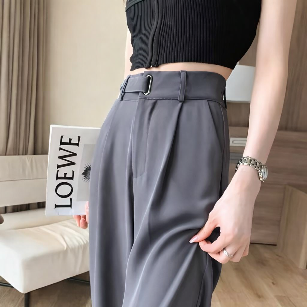 骨格ウェーブ 美くびれ強調 とろみハイウエスト ベルテッドスラックス