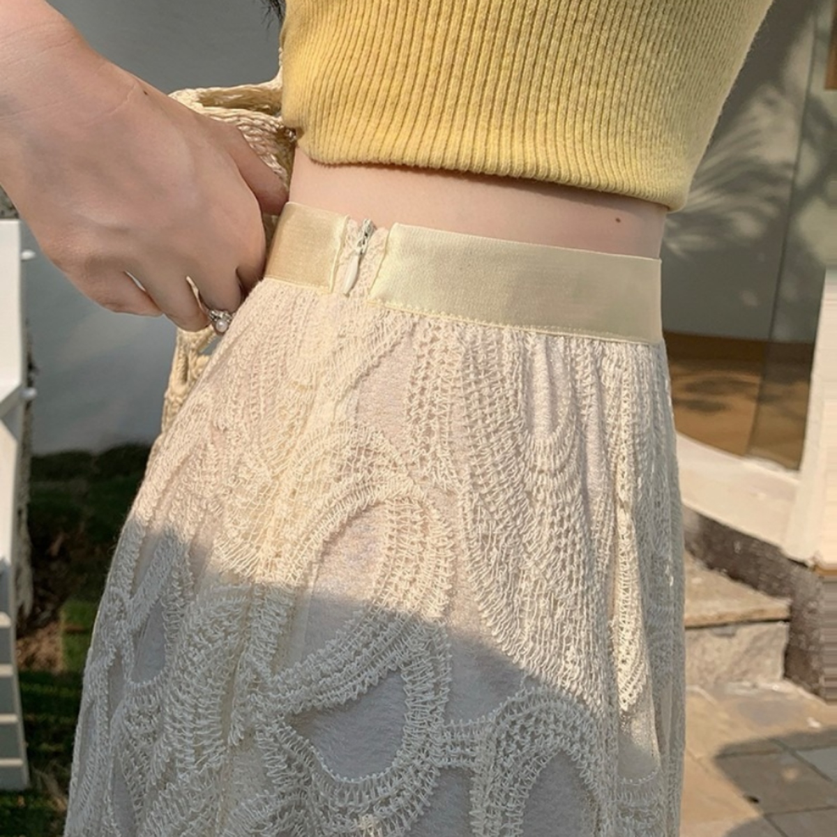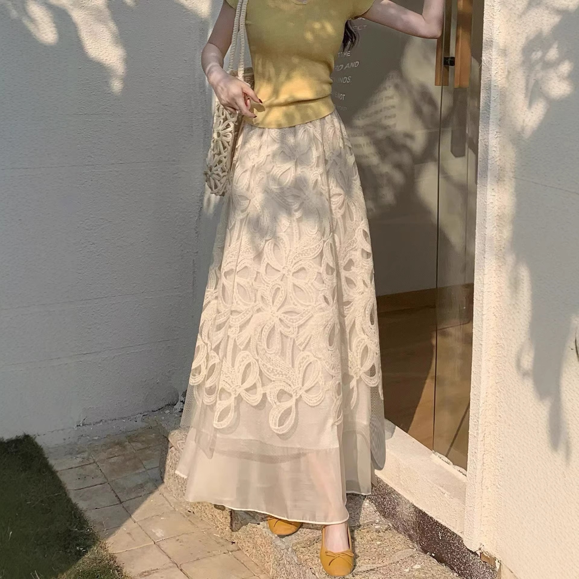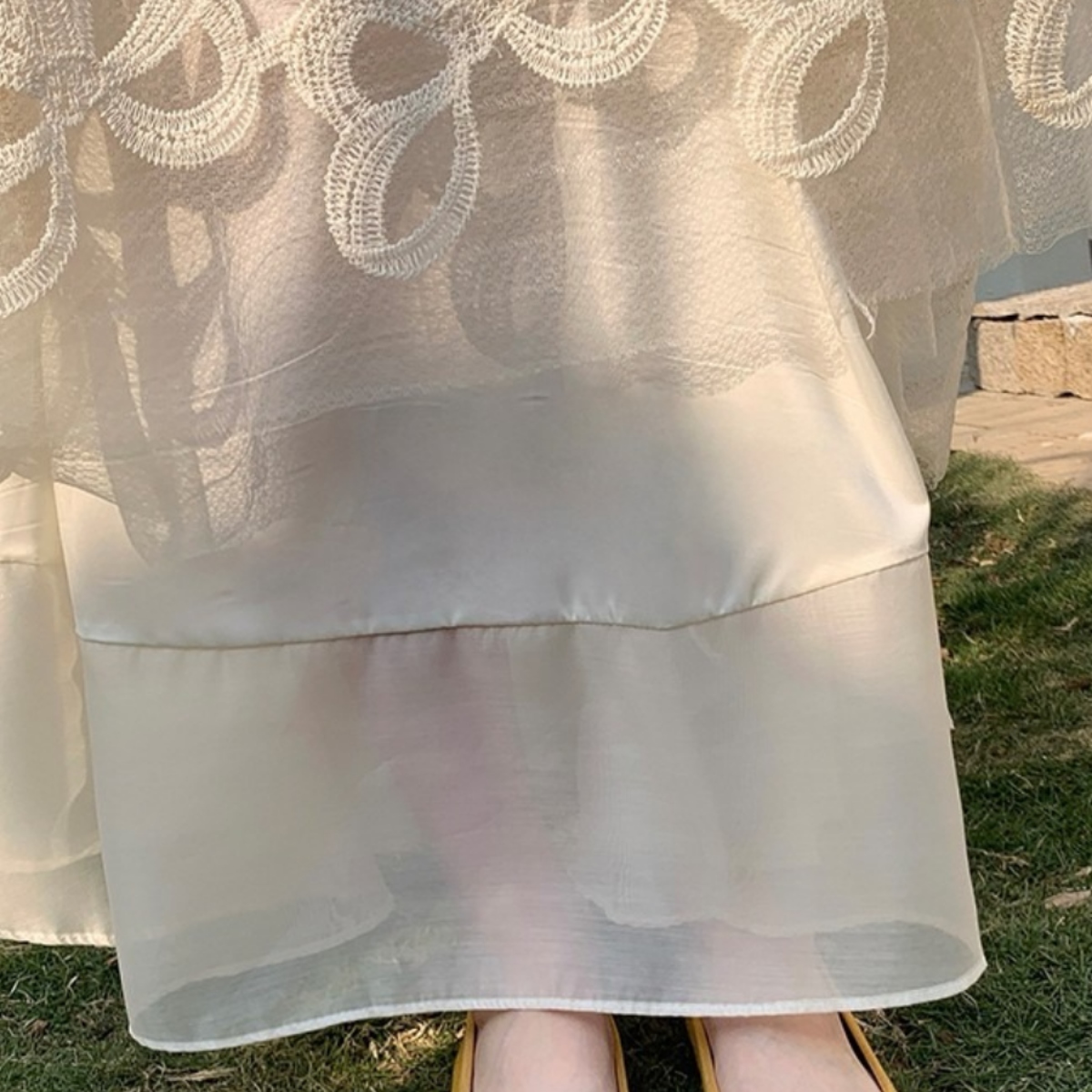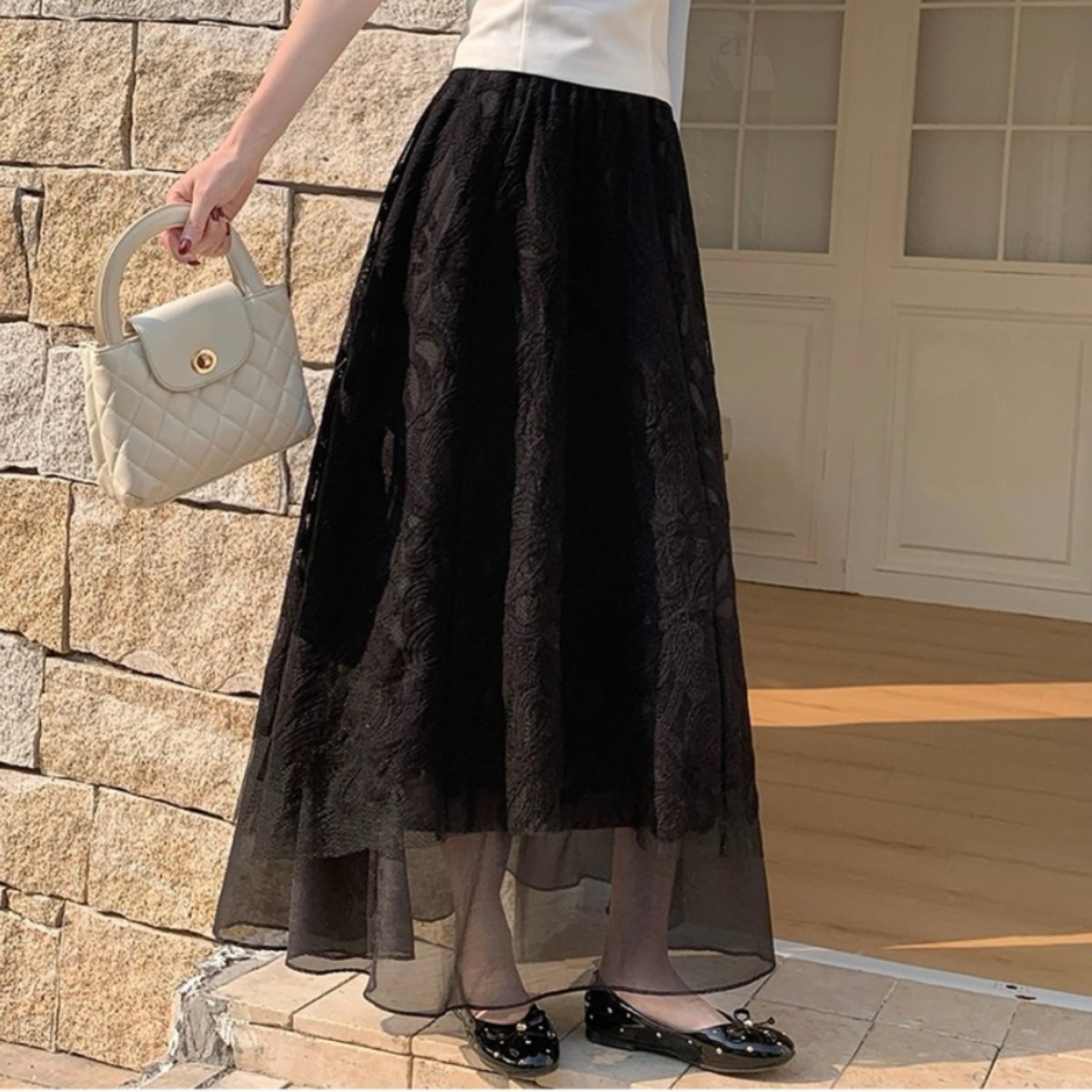 軽やかな透け感と繊細なレースが魅力の、骨格ウェーブさんのための美シルエットスカート。