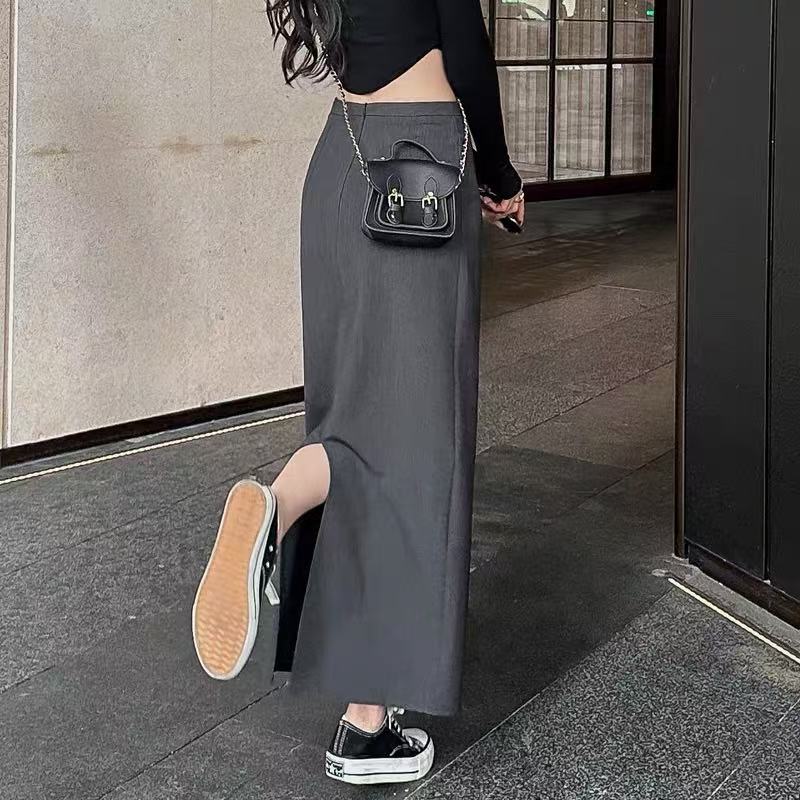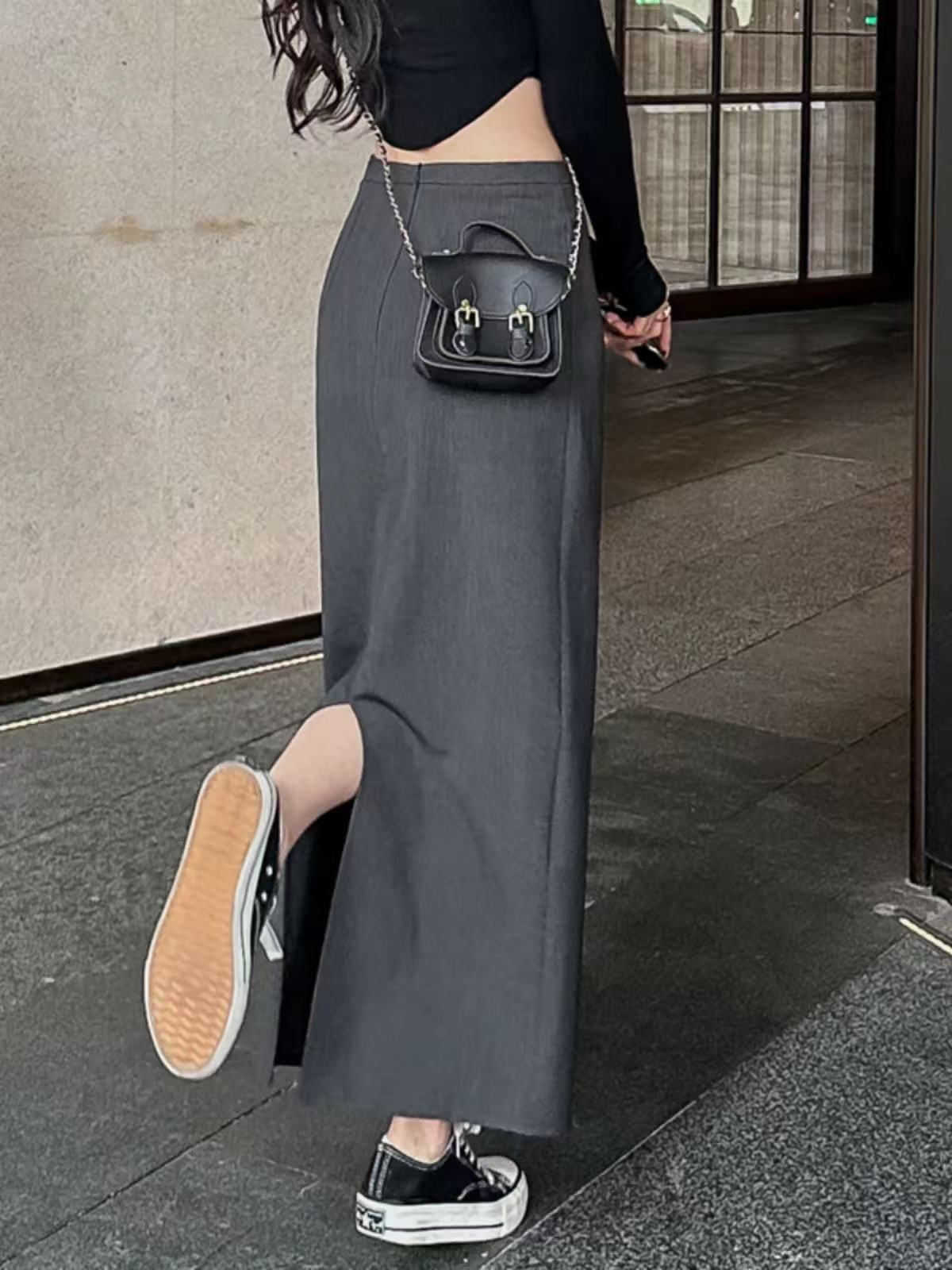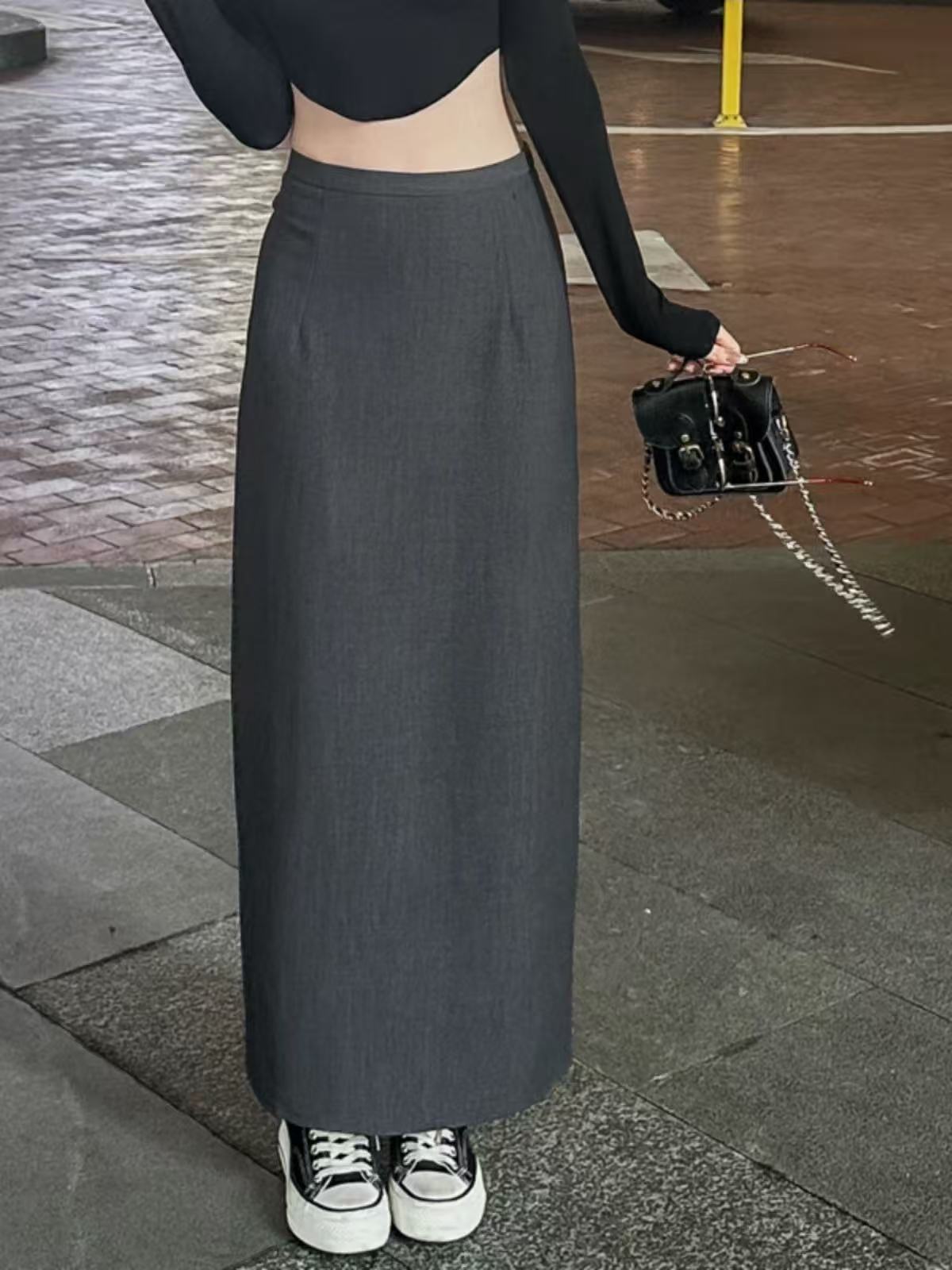 脚長効果で美シルエットを叶える、骨格ウェーブ向けナロースカート。高めウエストが腰位置を自然に引き上げ、脚をすらりと見せます。しなやかな素材が体に優しくフィットし、揺れるバックスリットが上品な色気を演出。ダークグレーとブラックの2色展開で、オフィスにも週末のお出かけにも活躍。