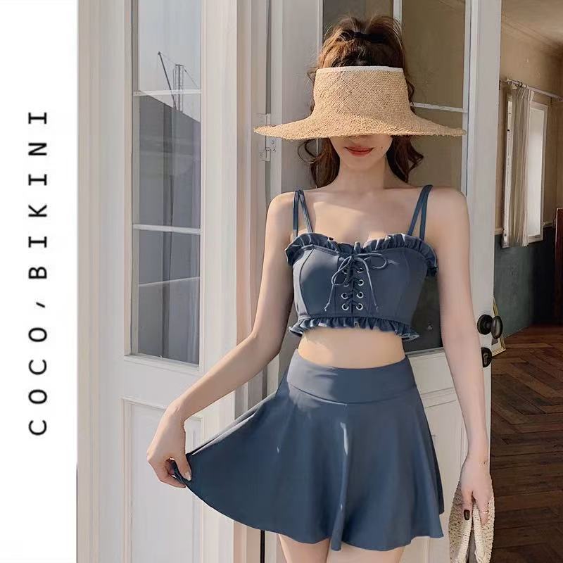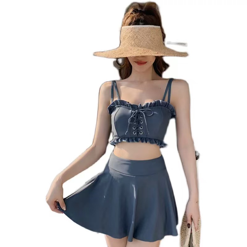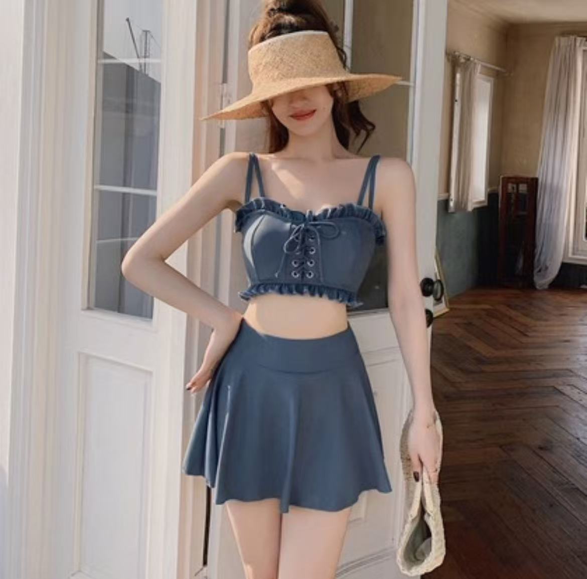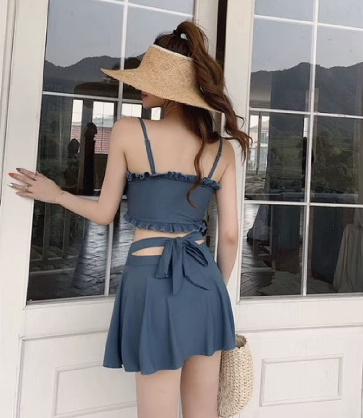 骨格ウェーブ 胸元ギャザー入りセパレート水着