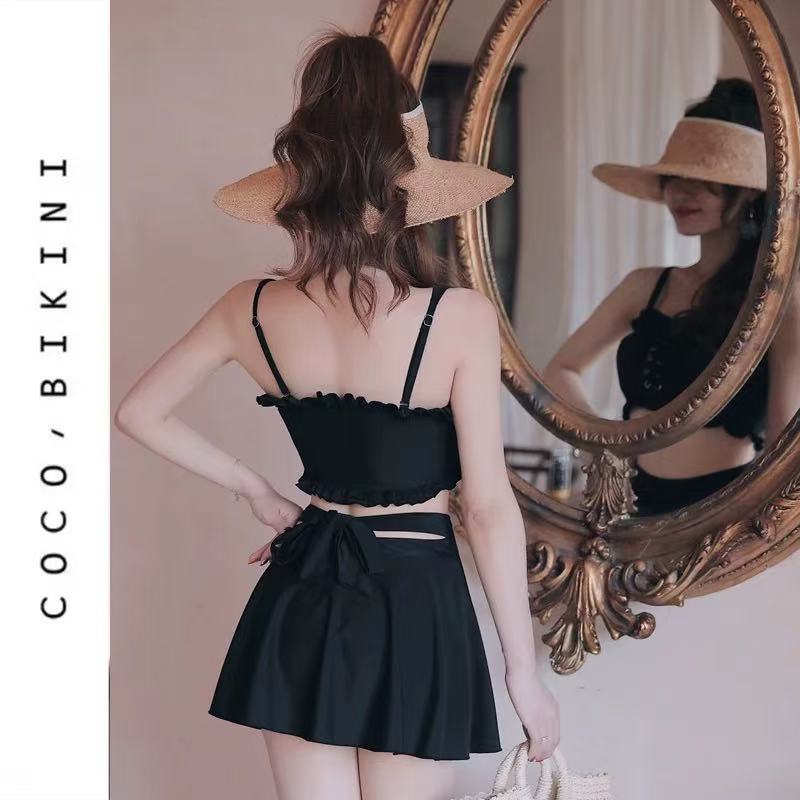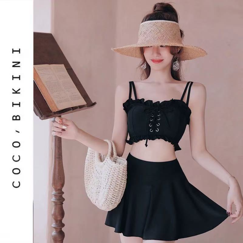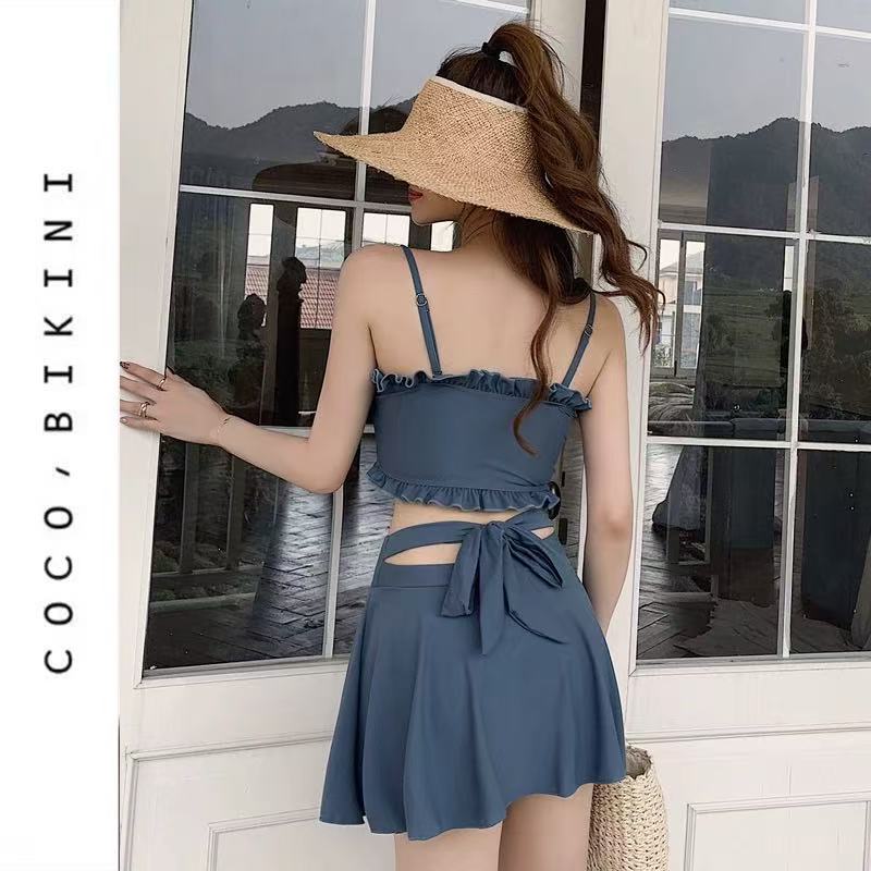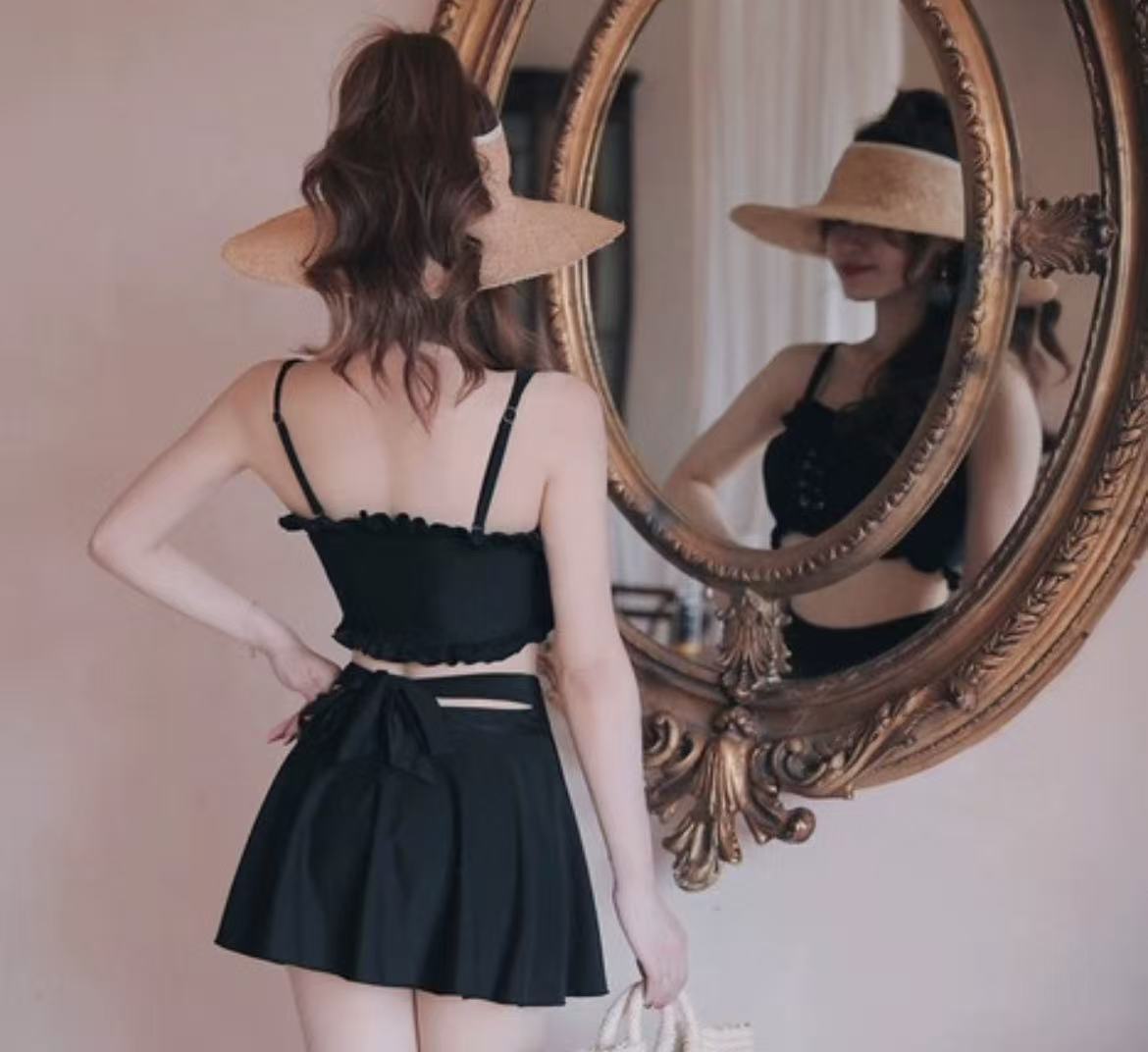 骨格ウェーブ 胸元ギャザー入りセパレート水着