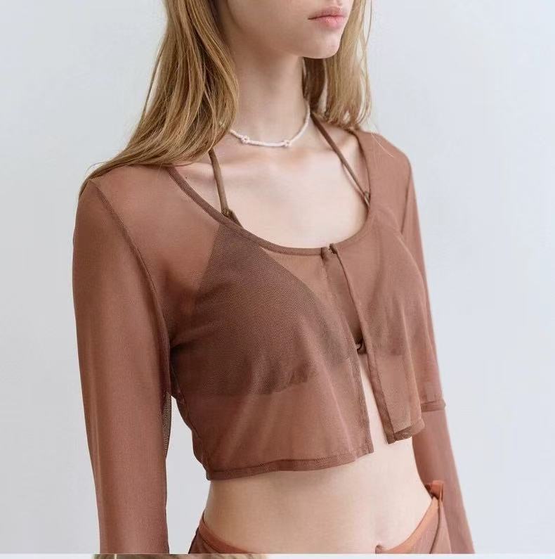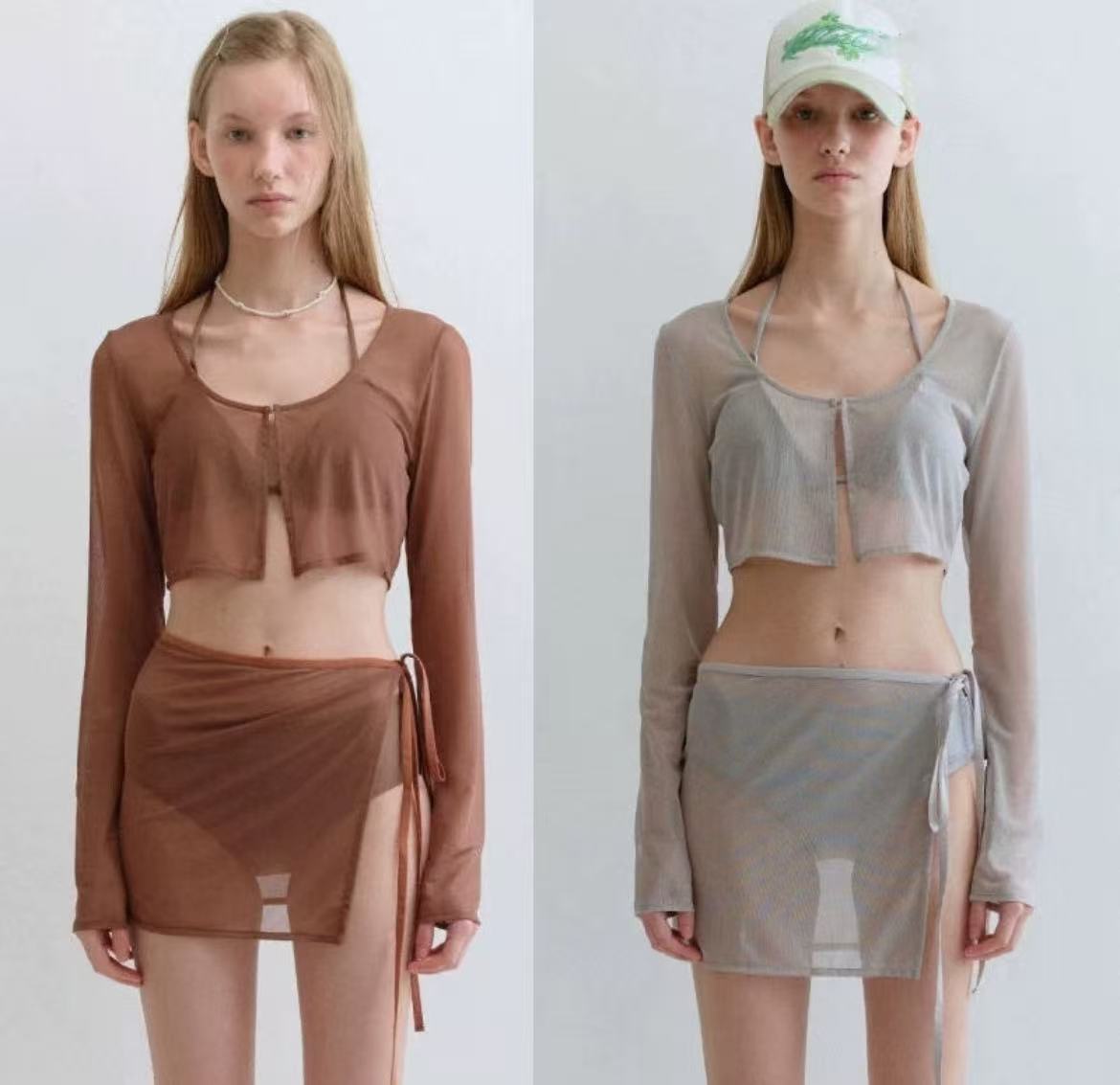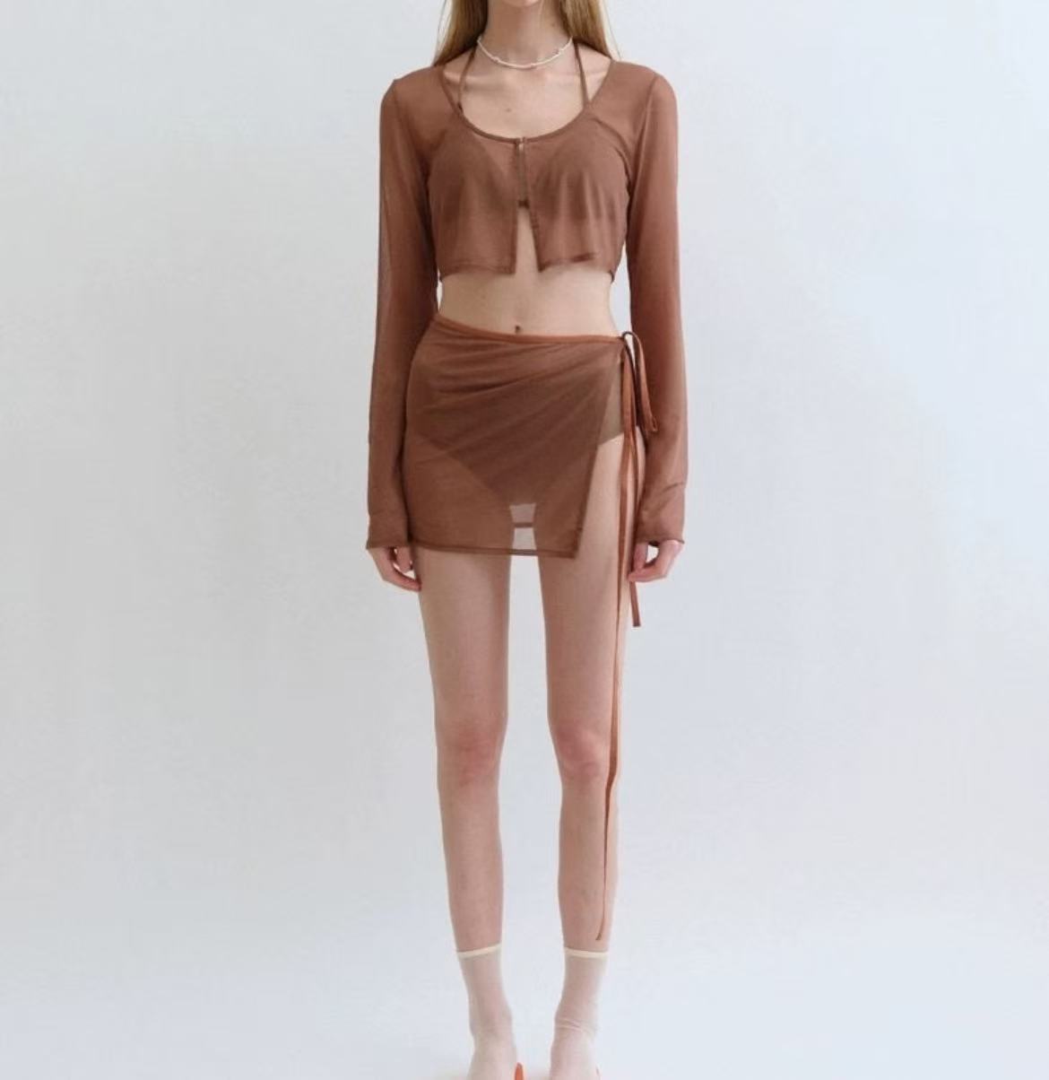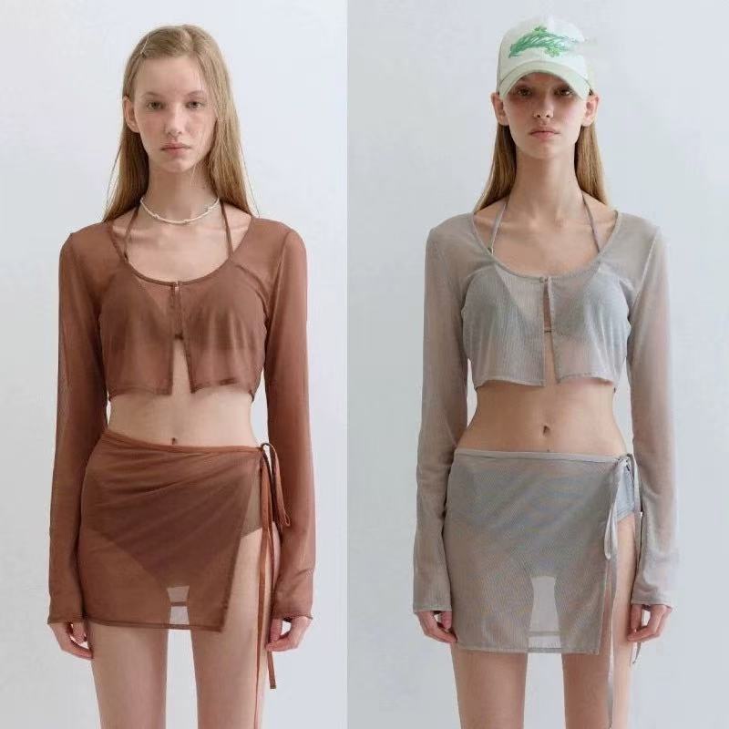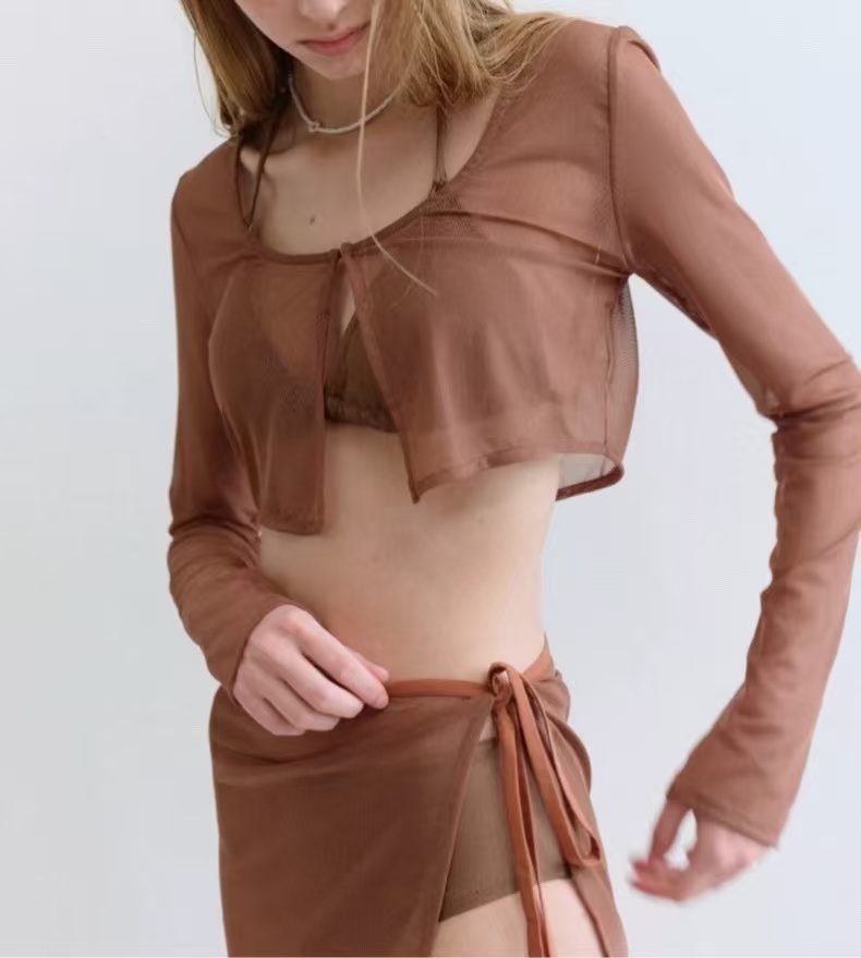 トレンドのシアーデザインを取り入れた、スカート付き水着。エレガントさと可愛らしさを兼ね備えた、おしゃれな一着です。 透け感のある軽やかな素材が骨格ウェーブのボディラインにやさしくフィットし、すっきりとした美しいシルエットを演出します。柔らかく肌なじみの良い生地が、快適な着心地を叶えてくれるのも嬉しいポイント。 セパレートタイプなので、自由な着こなしが楽しめるのも魅力。ビーチやプールはもちろん、リゾートでの特別なひとときにも映える、夏にぴったりのアイテムです。