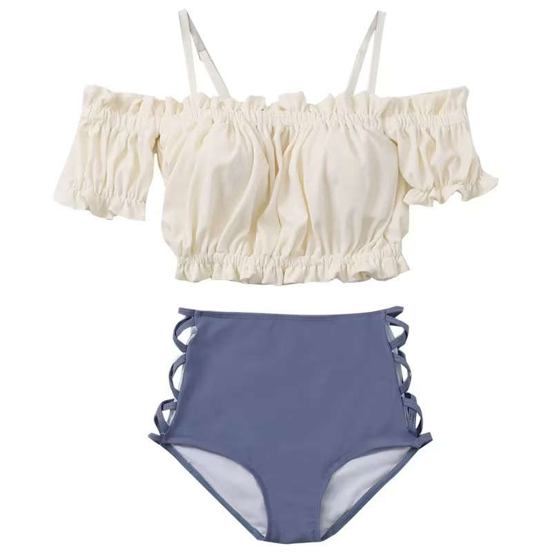 骨格ウェーブ ワンショルダー ハイウエスト スリット入り 水着