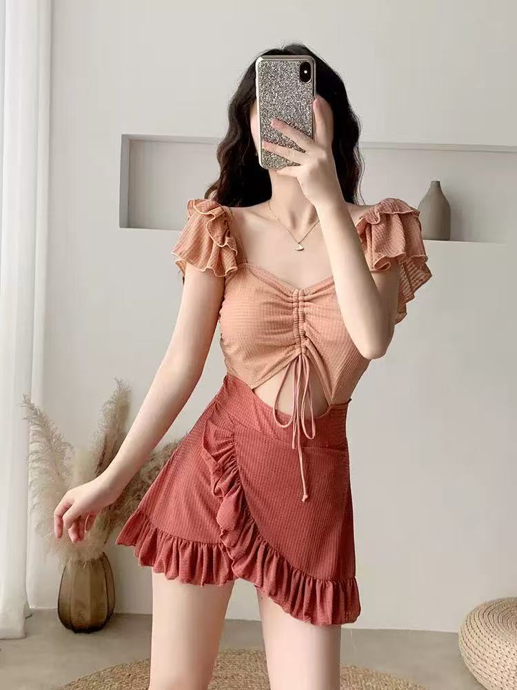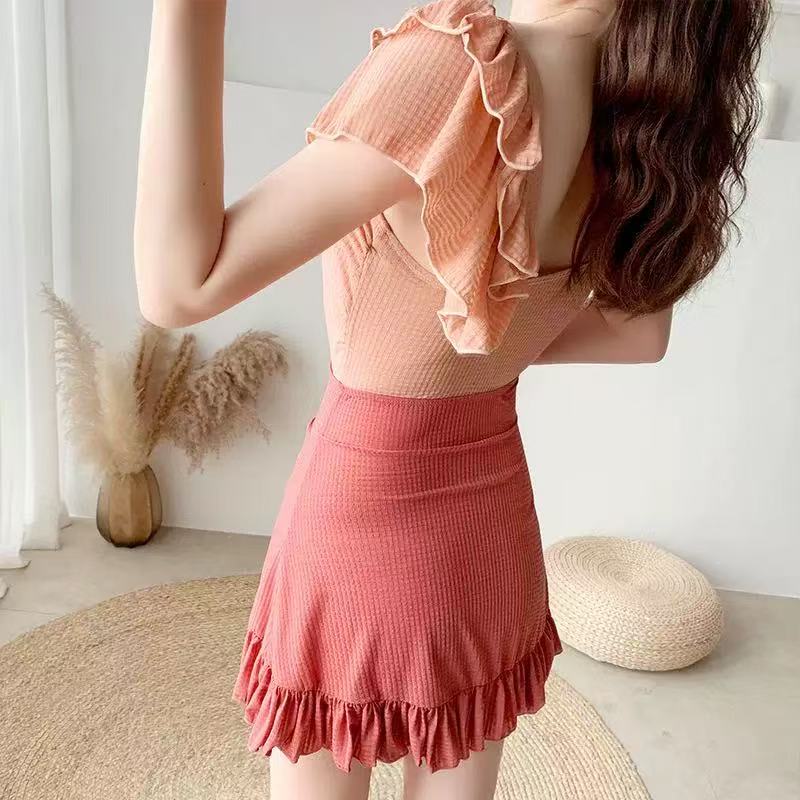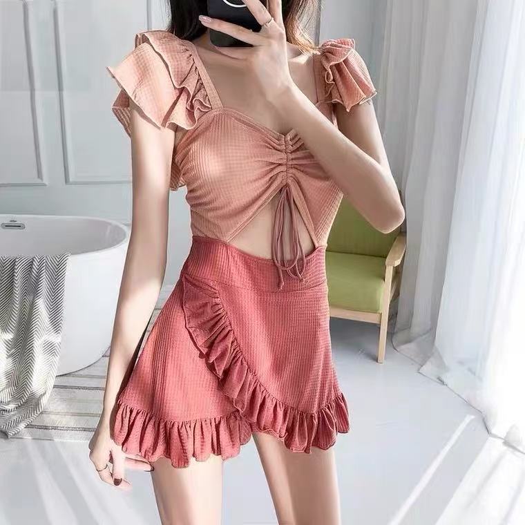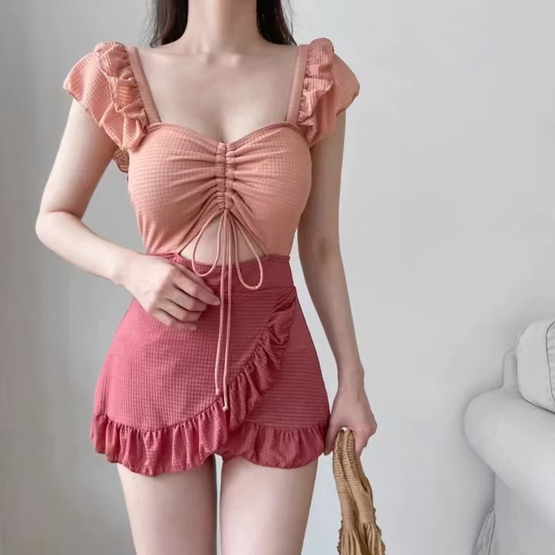 骨格ウェーブ フリルスカート 胸元ギャザー 水着