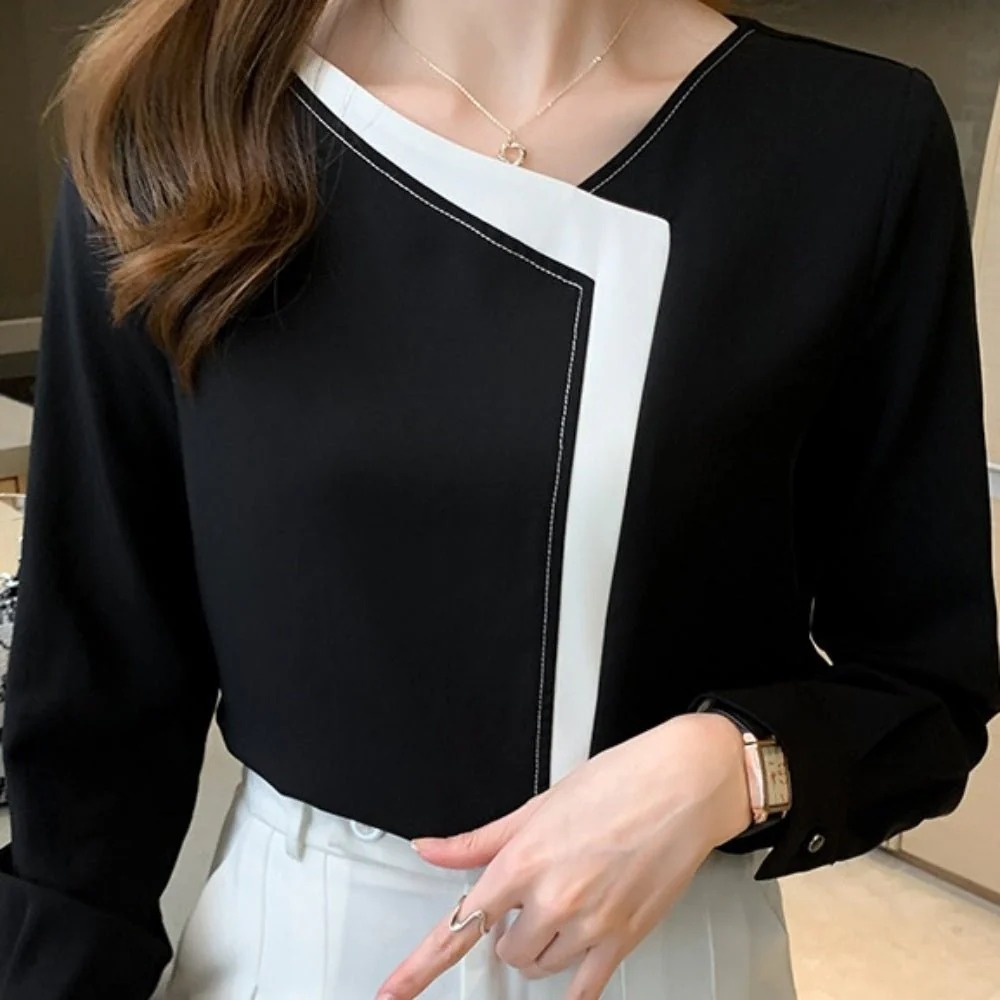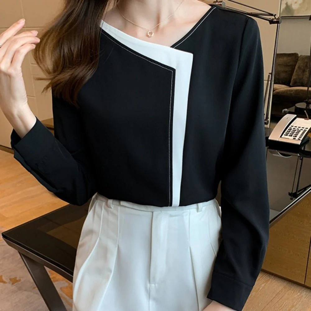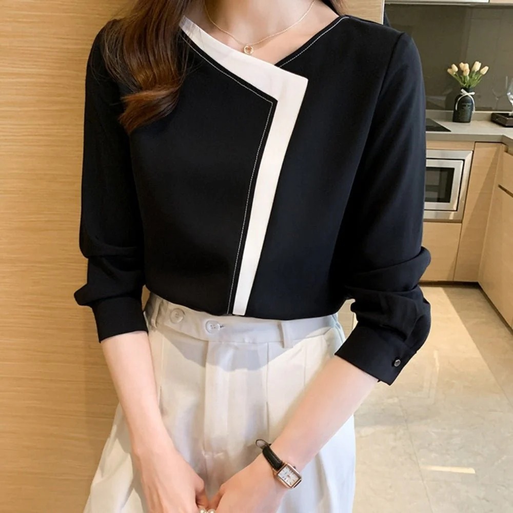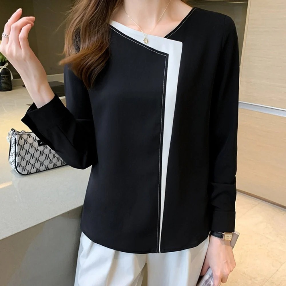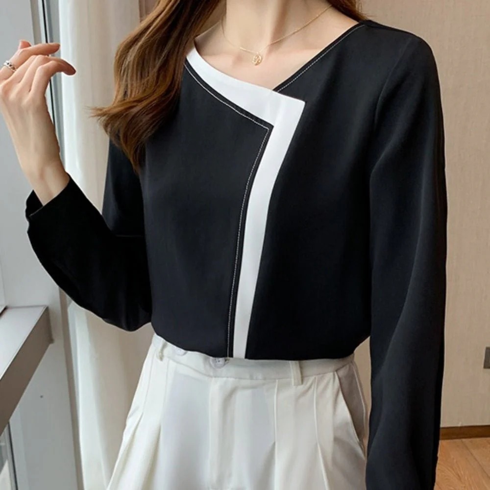 骨格ウェーブさんにぴったりの、シンプルさと華やかさを兼ね備えたバイカラーブラウスです。異なるカラーを組み合わせたデザインが、上品さと個性を同時に引き立ててくれます。軽やかな素材を使用しており、柔らかな肌触りで快適な着心地を実現。日常のカジュアルコーデにはもちろん、ちょっとしたお出かけや特別なイベントでも活躍する一枚です。
