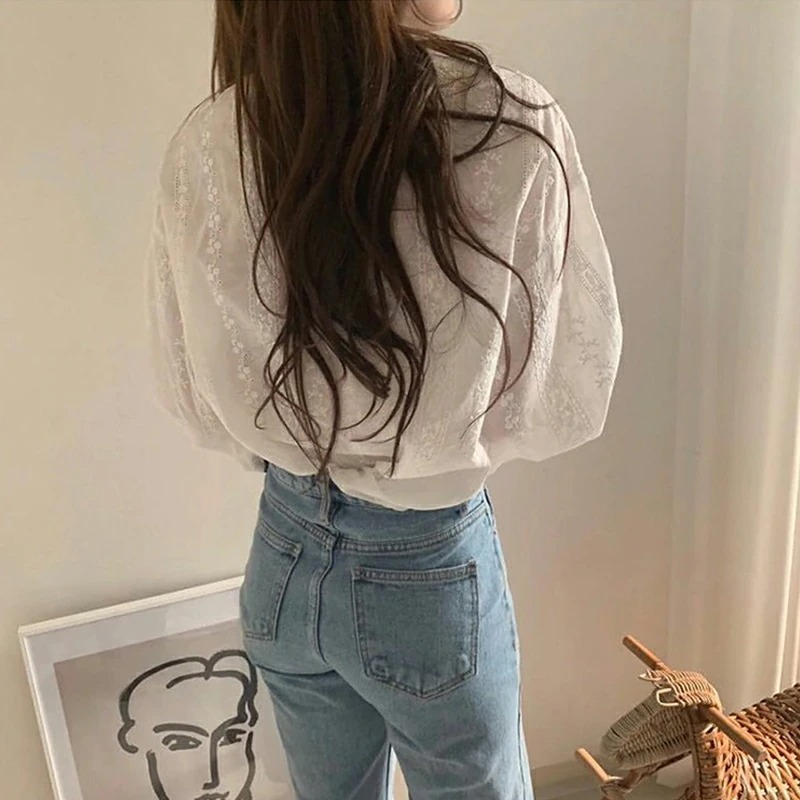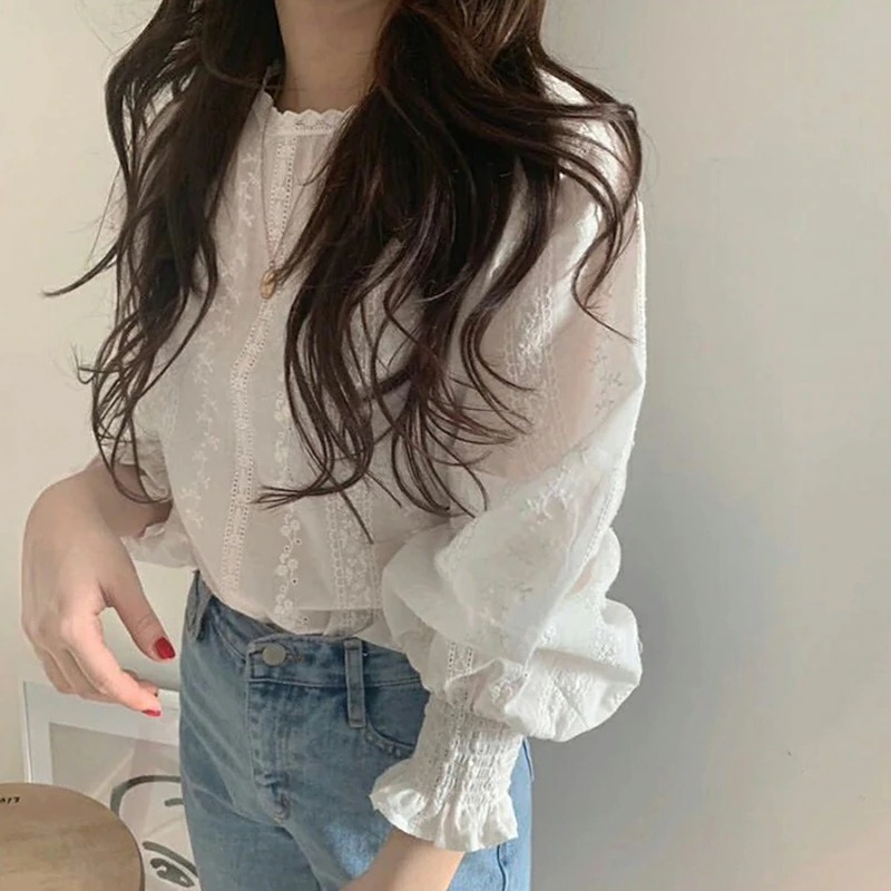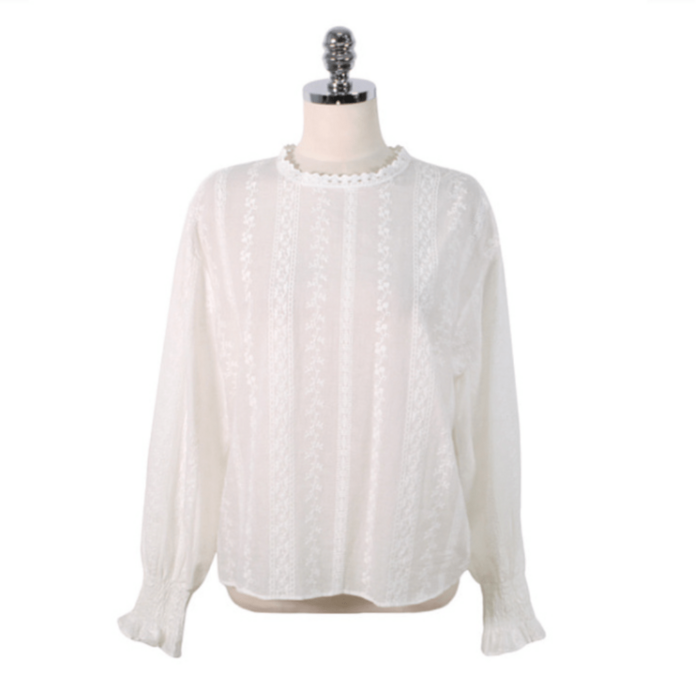 骨格ウェーブ バルーンレースブラウス