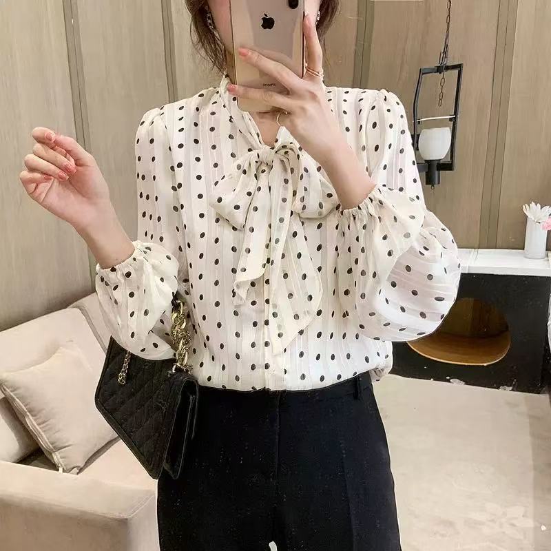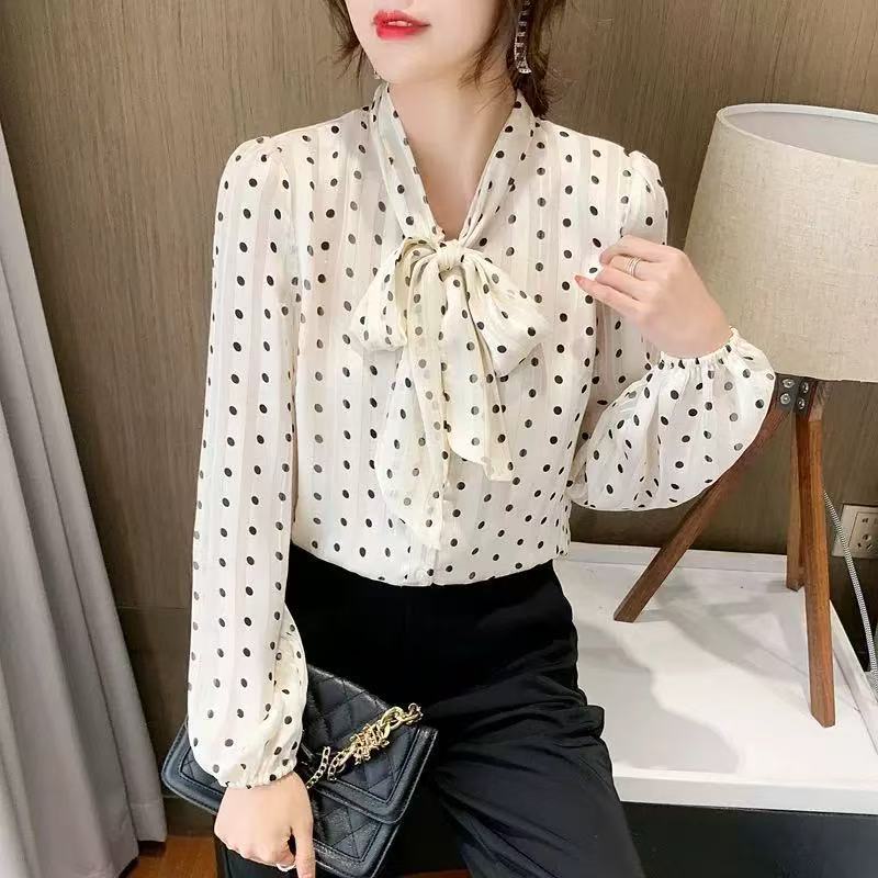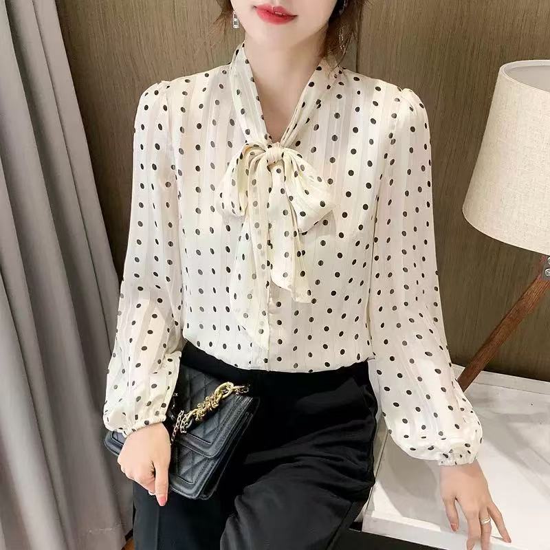 骨格ウェーブ服ドット柄2wayボウタイブラウストップス