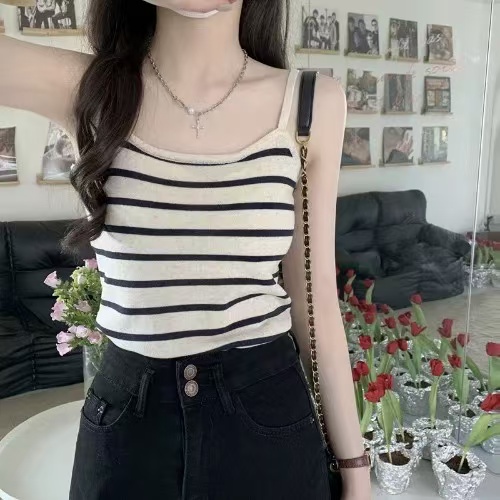 この「骨格ウェーブニットボーダーキャミソール」は、細めのボーダー柄が洗練された抜け感を演出。肌に優しく沿うリブニット調のシルエットが、華奢な骨格ウェーブ体型にほどよくフィットし、自然な女性らしい曲線美を引き立てます。 ショート丈×ジャストサイズの感覚は、下重心になりがちなウェーブ体型のバランスを整え、脚長・ウエスト位置も自然に引き上げてくれます。