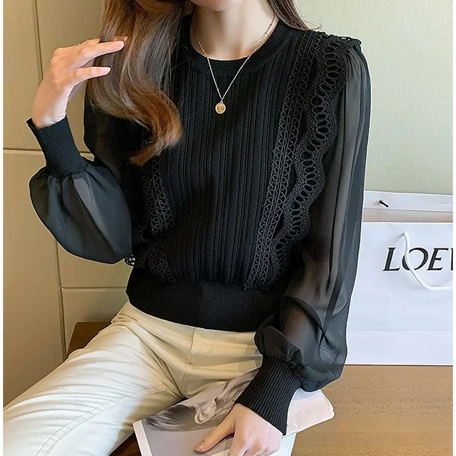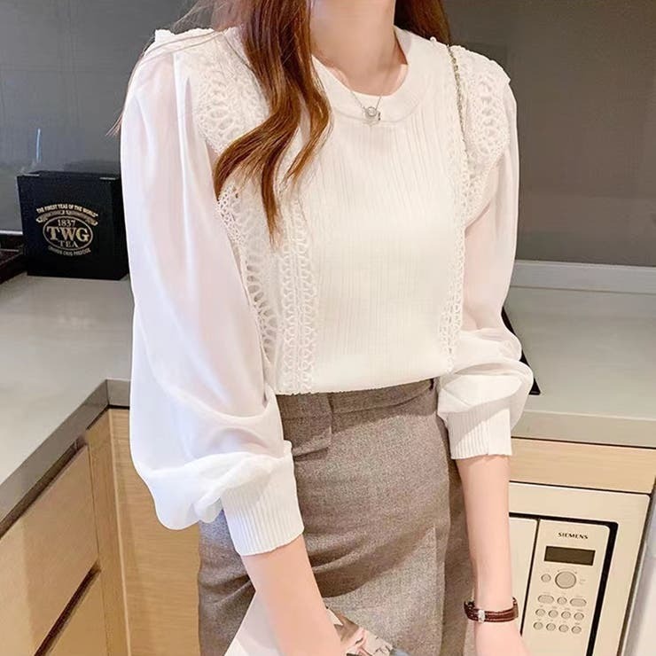 柔らかなシアースリーブから透ける肌の質感は、上品でありながら、どこか目が離せない女性らしさを演出。