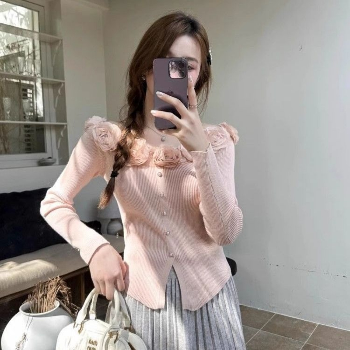 この立体フラワーモチーフニットは、そんなあなたの日常をふんわり明るく彩るパートナーです。