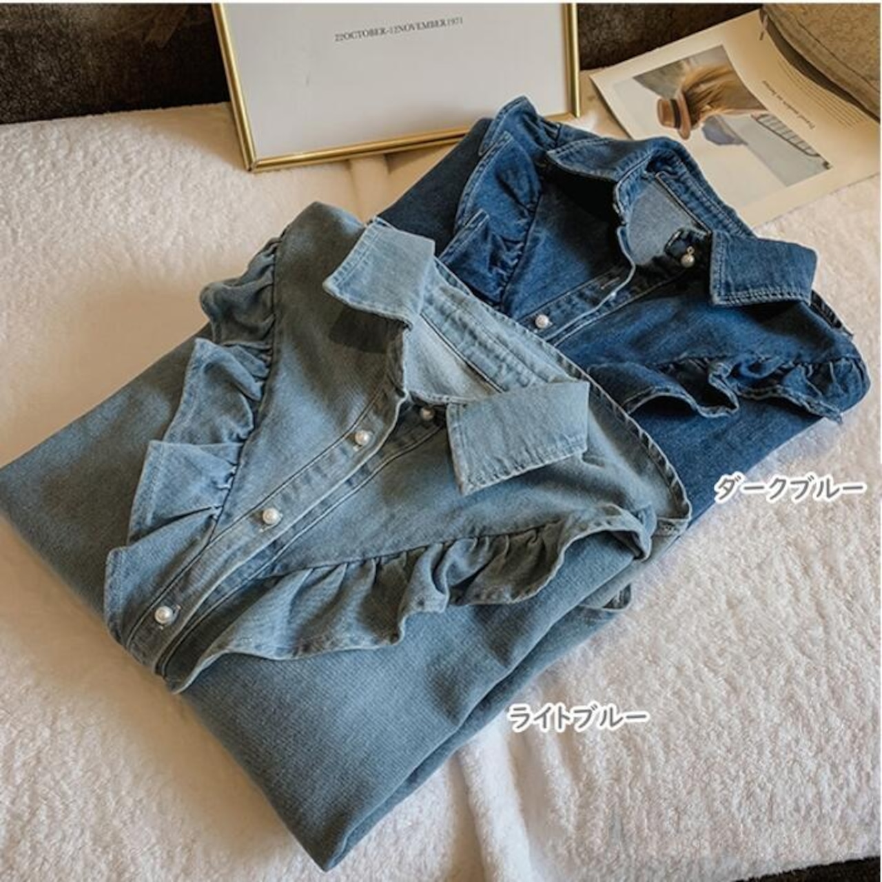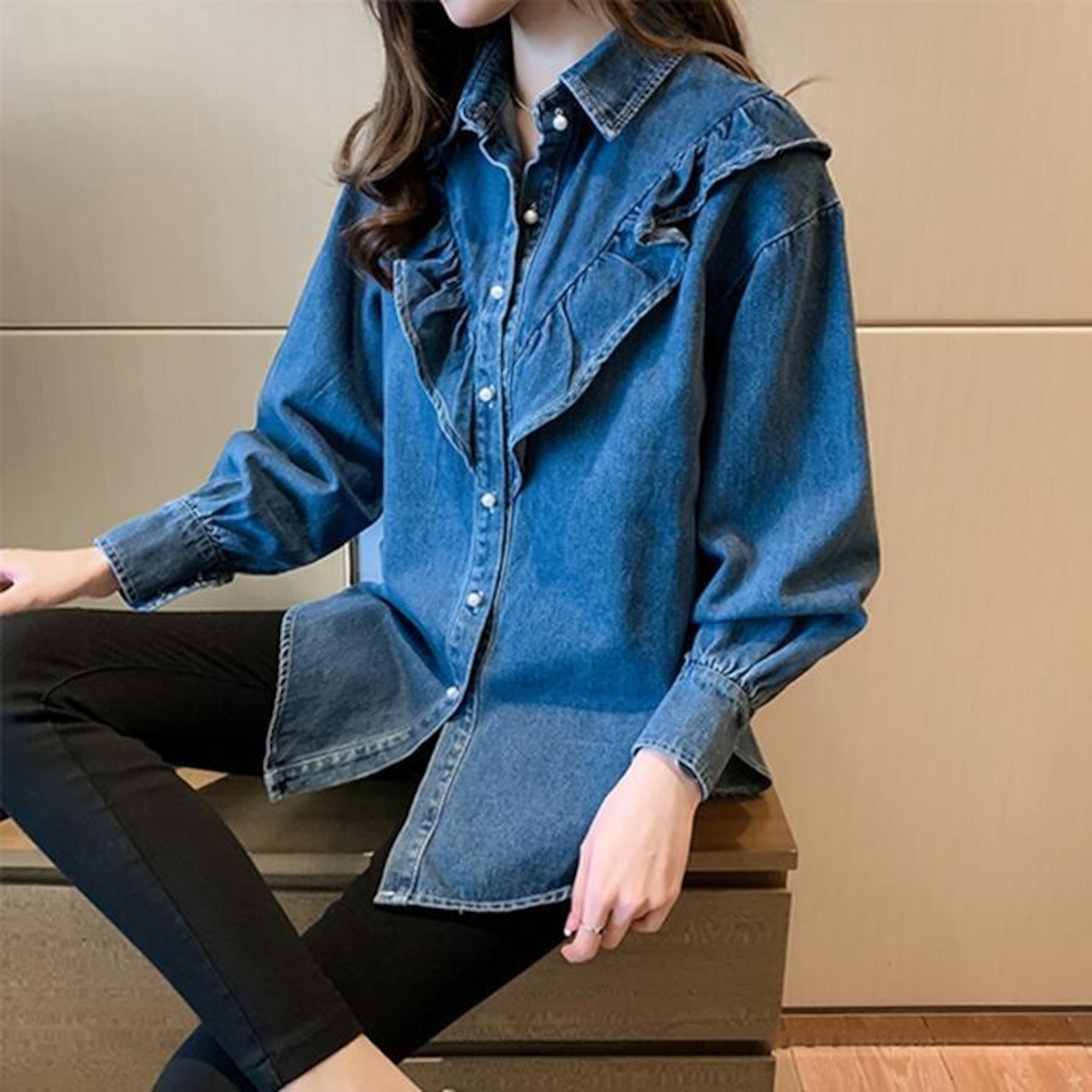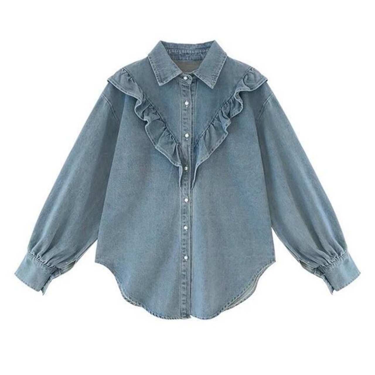骨格ウェーブ フロントフリルデニムシャツ