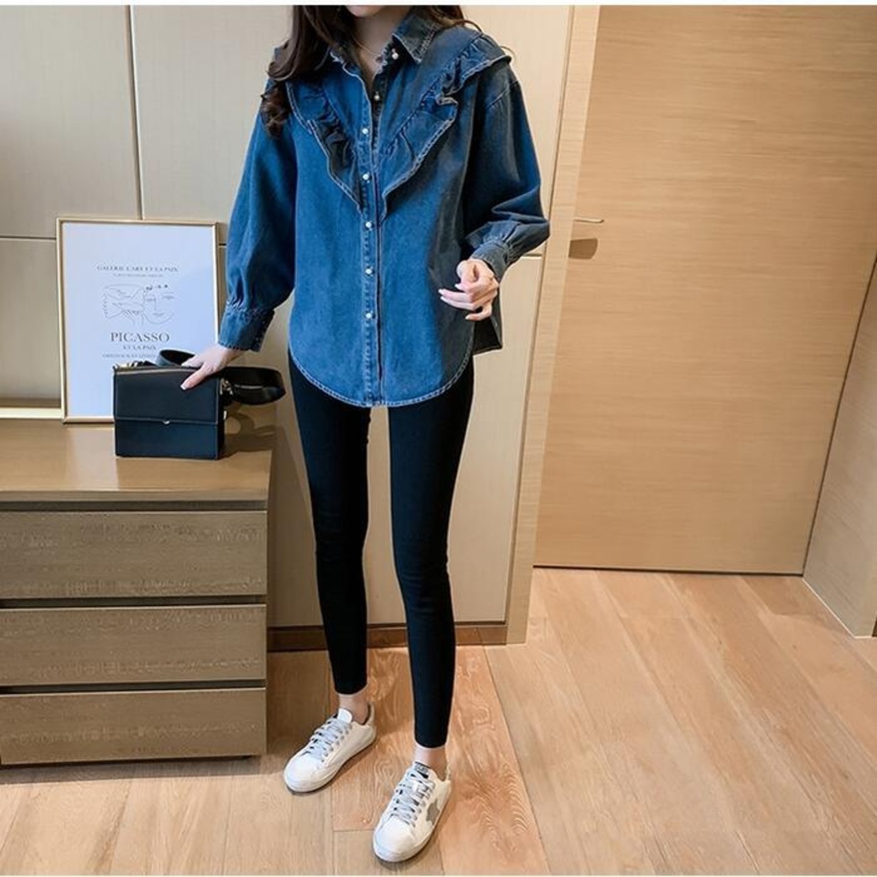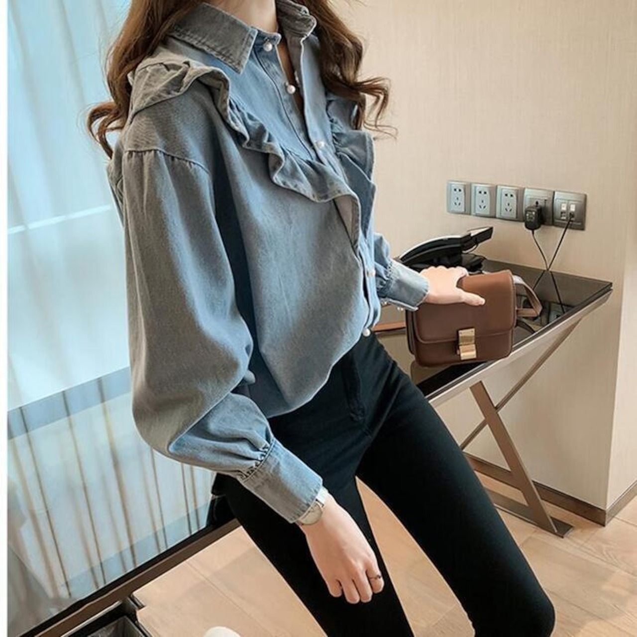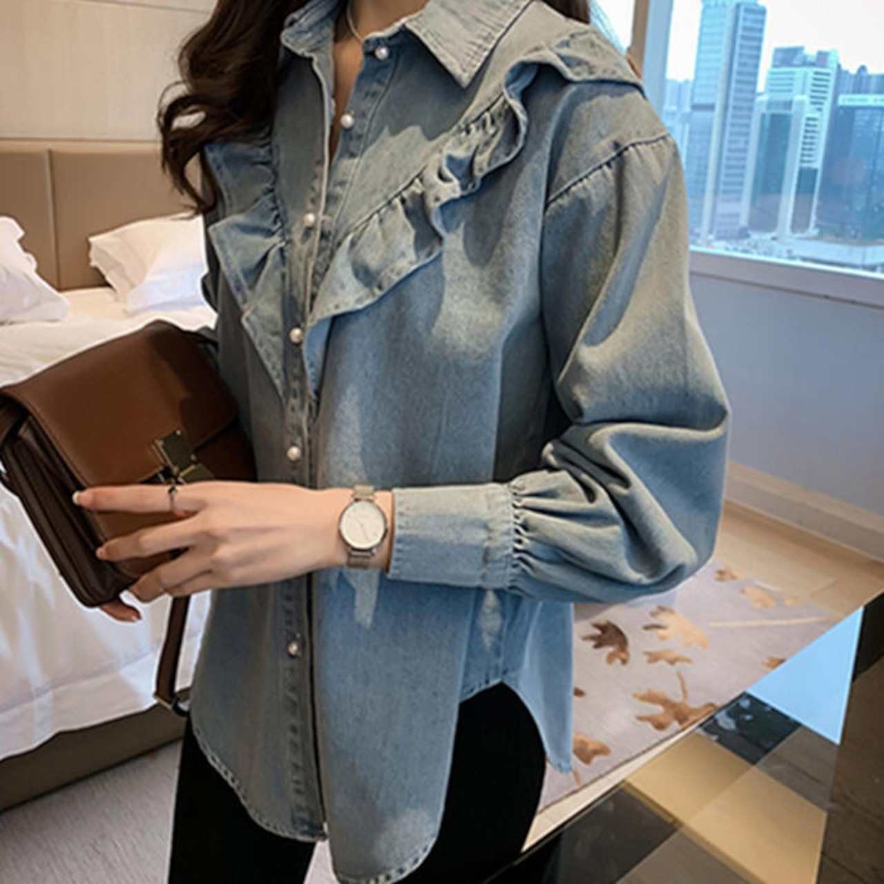骨格ウェーブ フロントフリルデニムシャツ