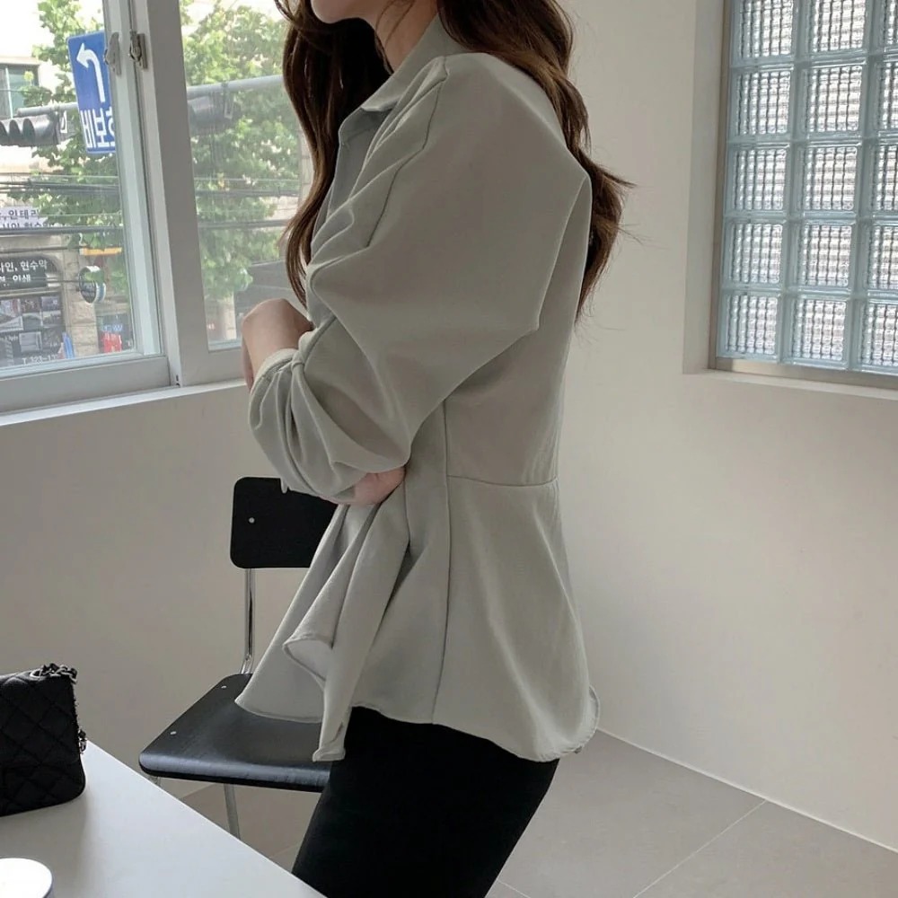 骨格ウェーブ 上半身すっきり ペプラムカシュクールシャツ