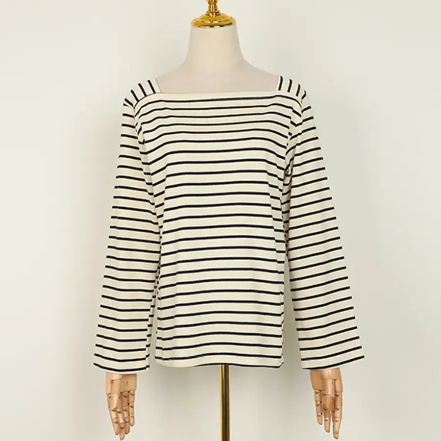 骨格ウェーブ スクエアネックボーダーTシャツ